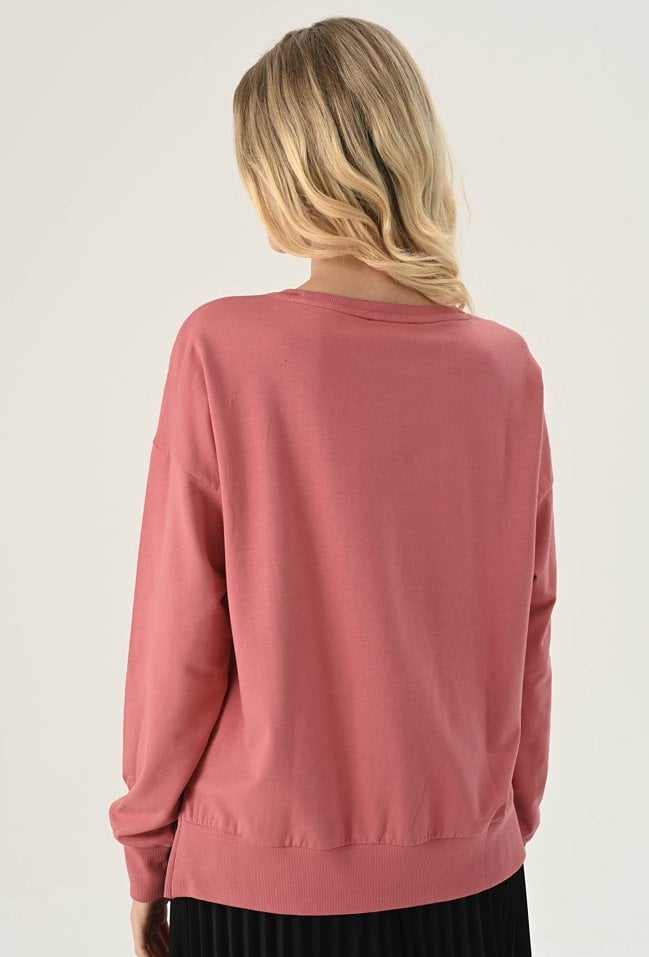 Różowa bluzka z kopertowym dekoltem
