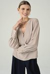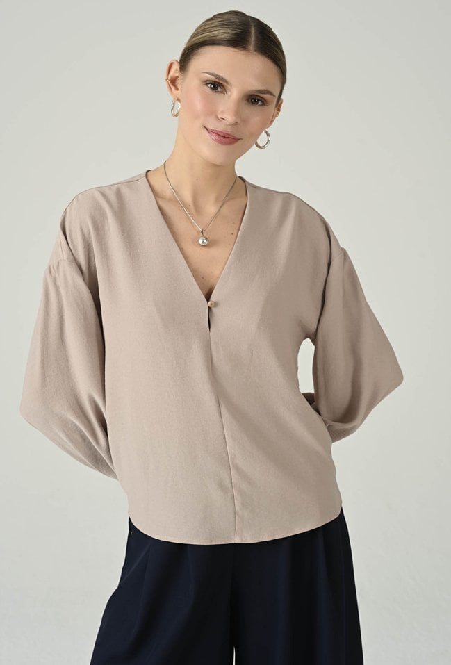 Beżowa bluzka damska z dekoltem V