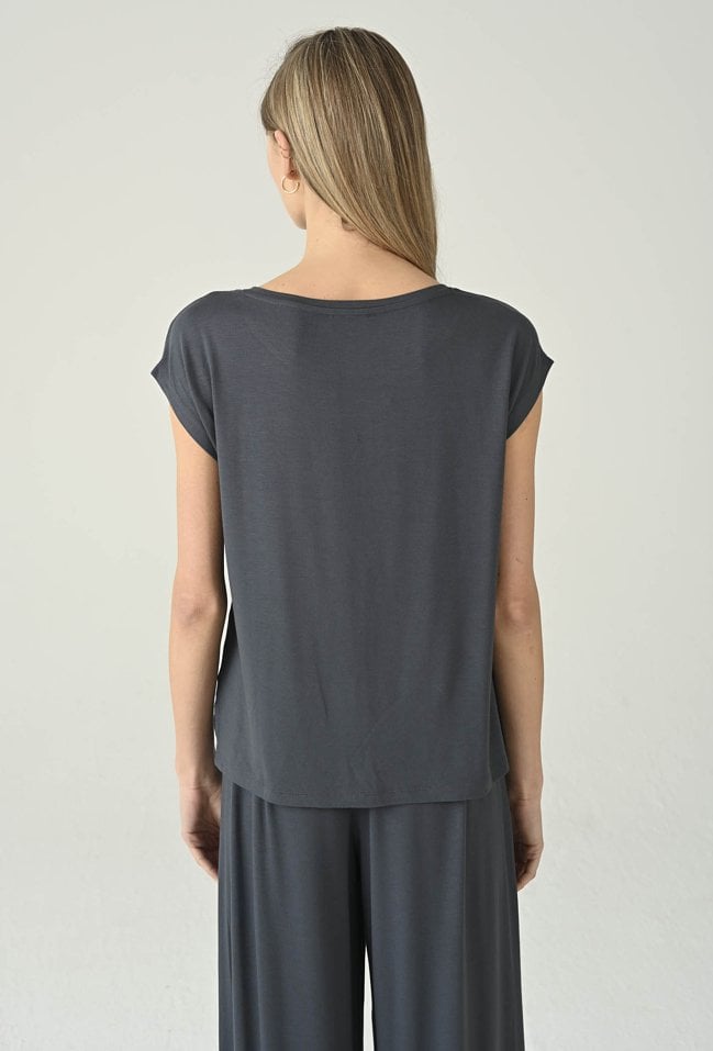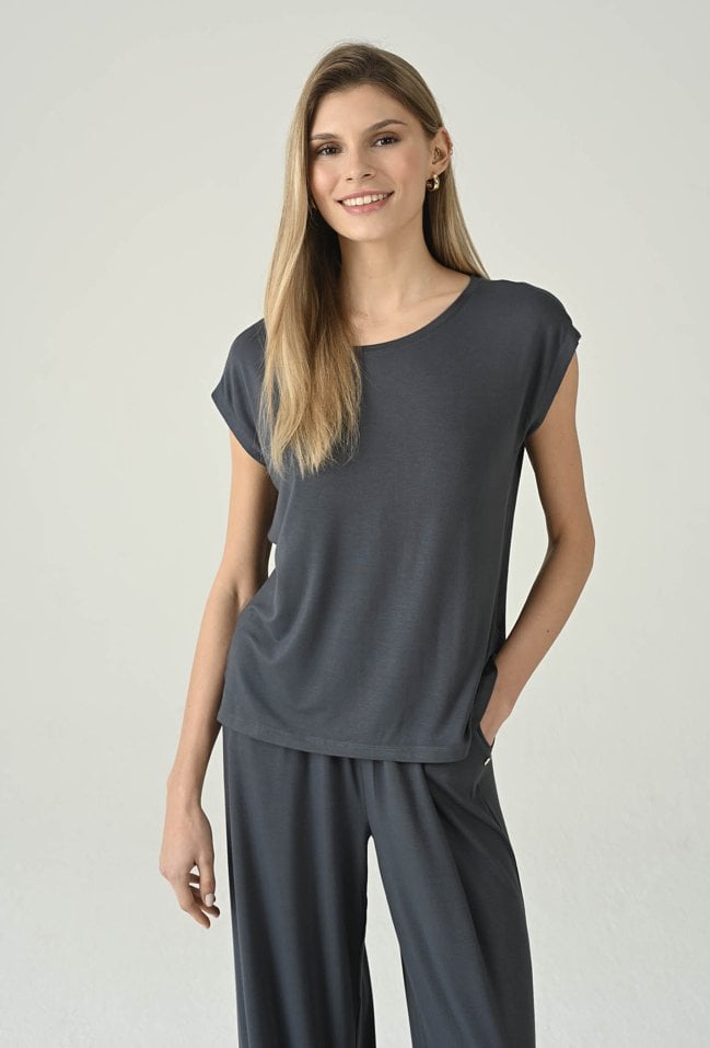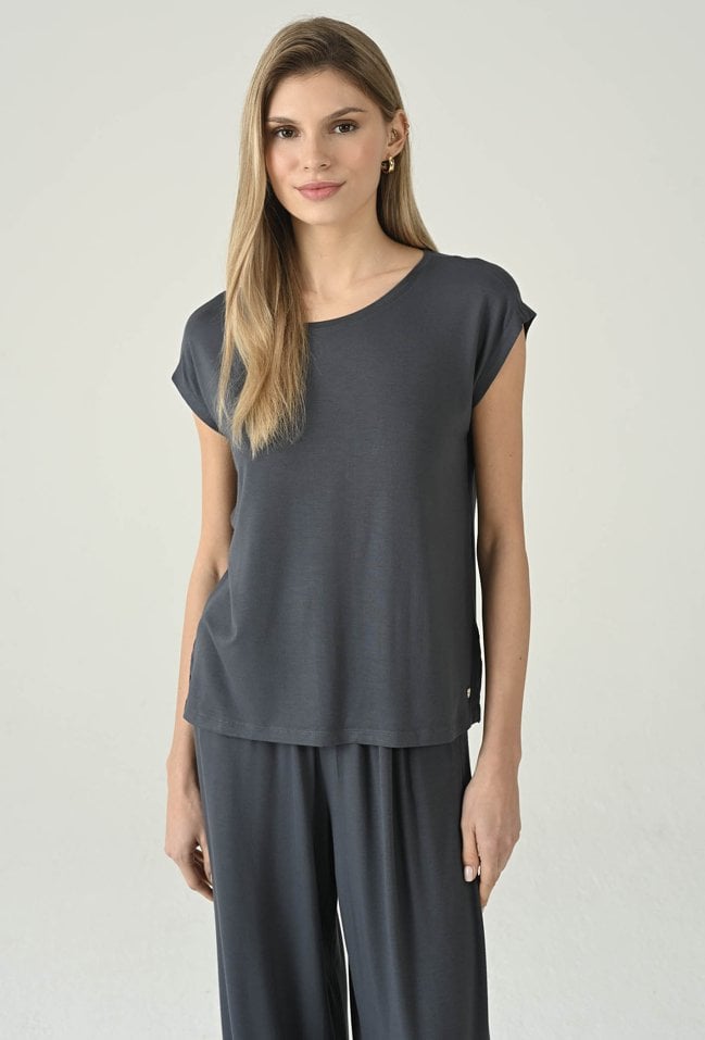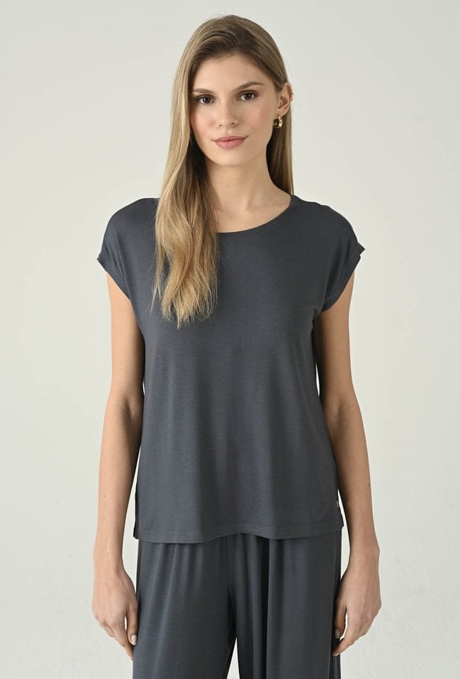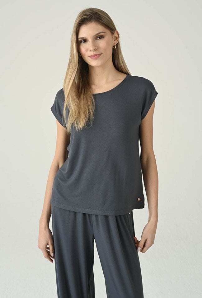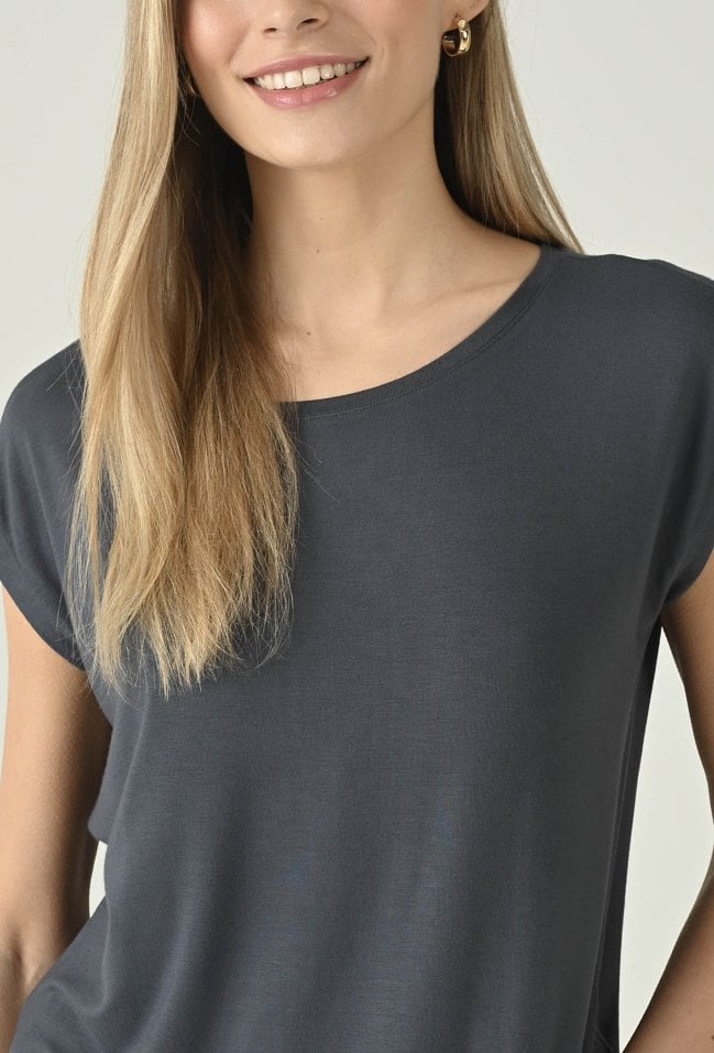 Uniwersalna bluzka w szarym odcieniu, która łączy minimalistyczny styl z codzienną wygodą. Okrągły dekolt nadaje jej ponadczasowego charakteru, a krótki rękaw podkreśla lekkość i swobodę noszenia. Prosty fason dobrze układa się na sylwetce i zapewnia komfort przez cały dzień, dzięki czemu model świetnie sprawdza się w wielu zestawach. Bluzka pasuje zarówno do jeansów, jak i do spodni materiałowych czy spódnic — idealna na co dzień, do pracy w mniej formalnym wydaniu i na weekendowe stylizacje.