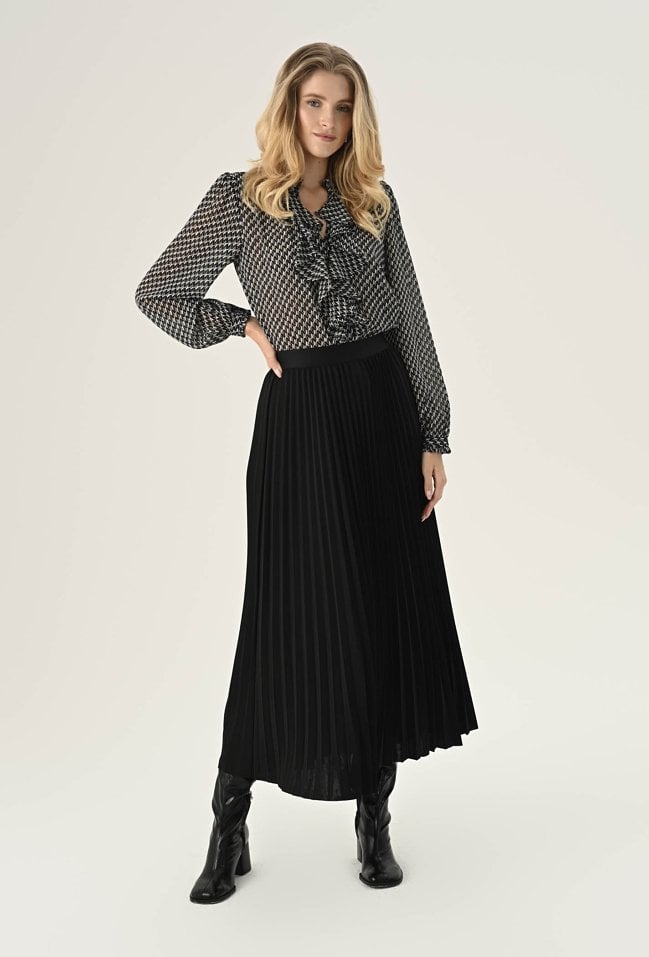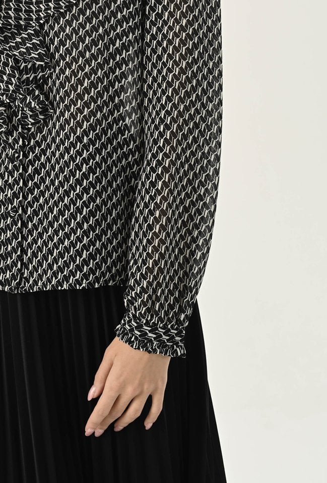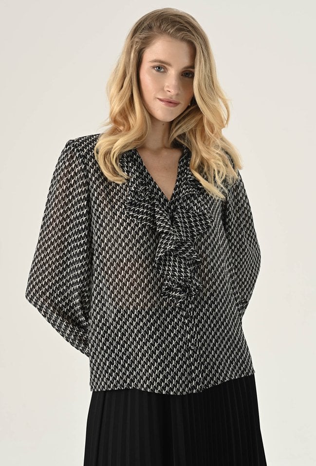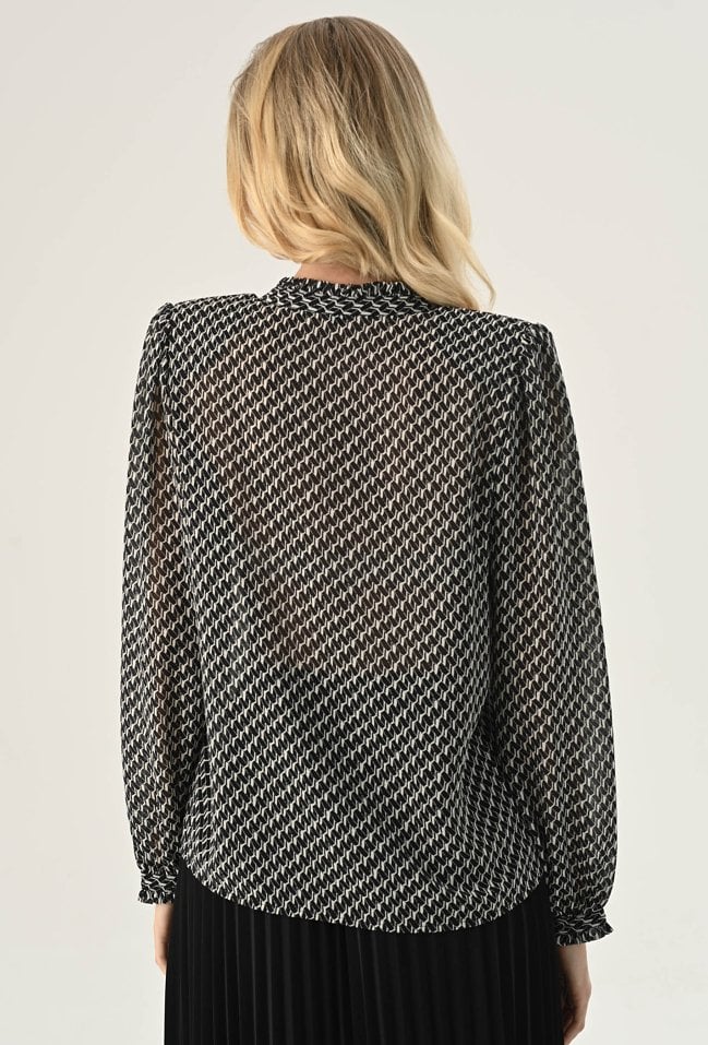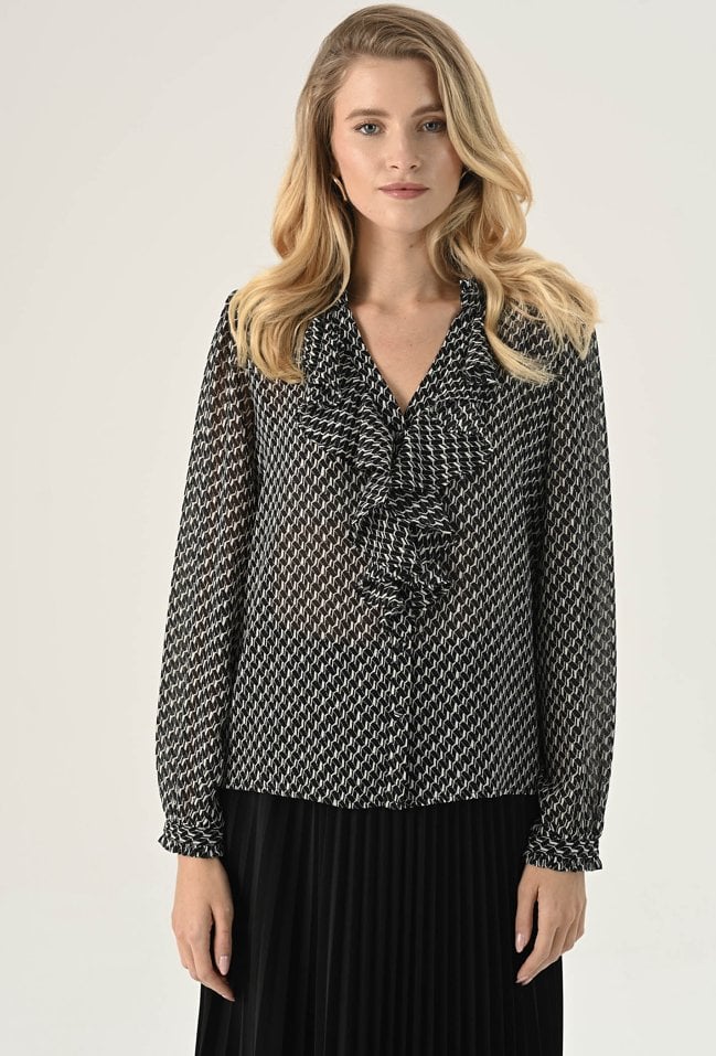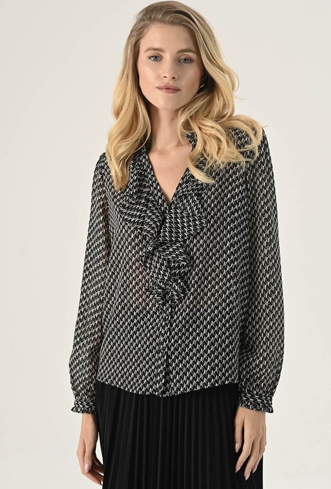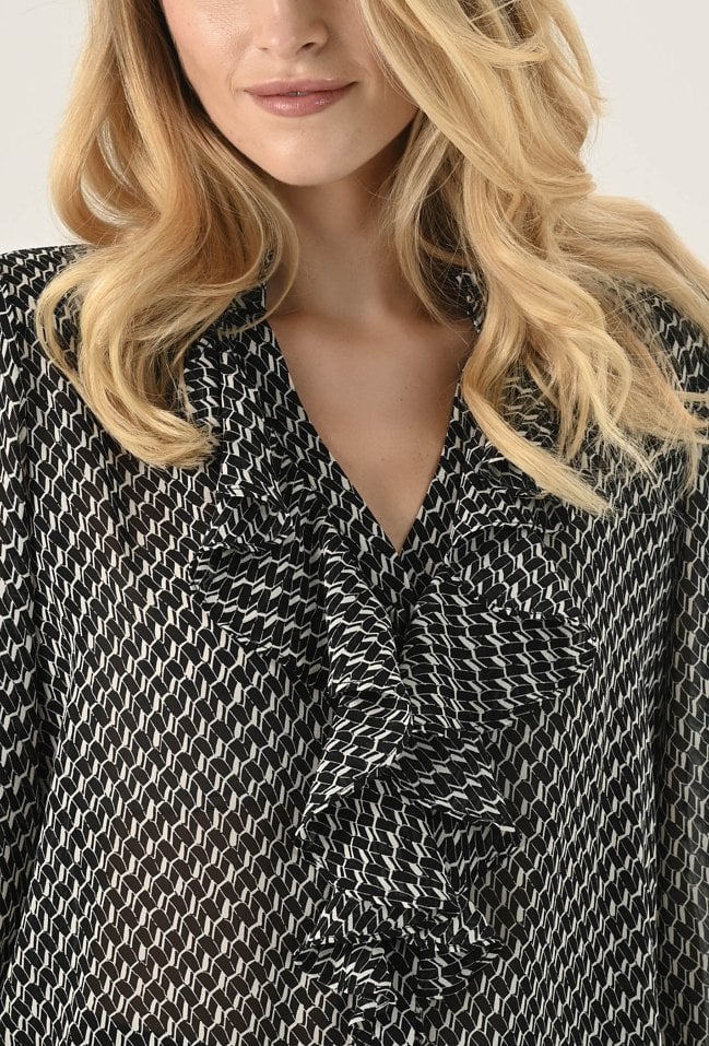 Bluzka ze zwiewnej tkaniny w biało-czarny wzór
