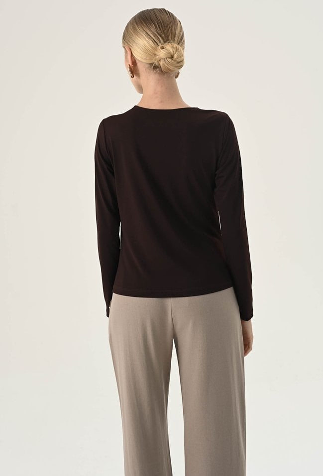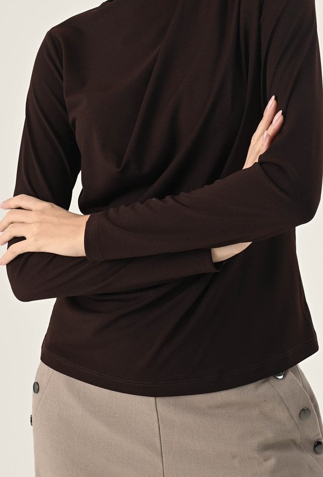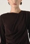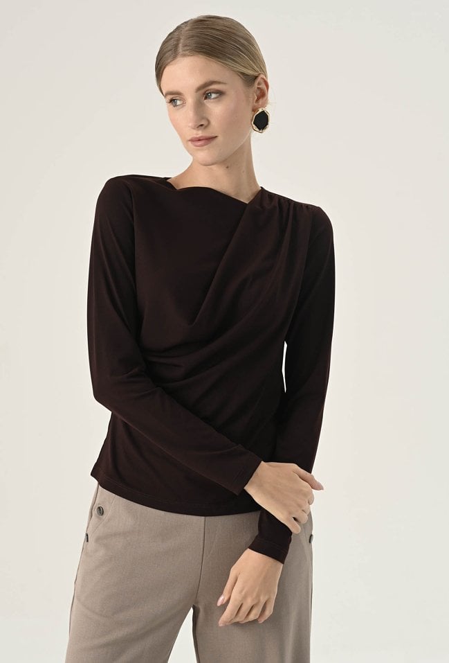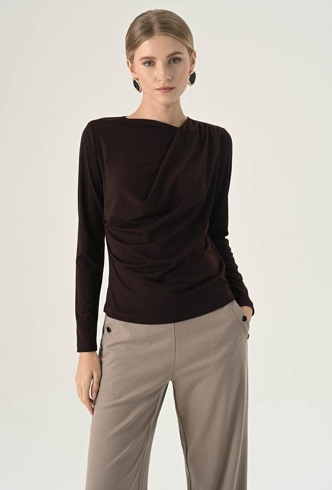 Brązowa asymetryczna bluzka z drapowaniem