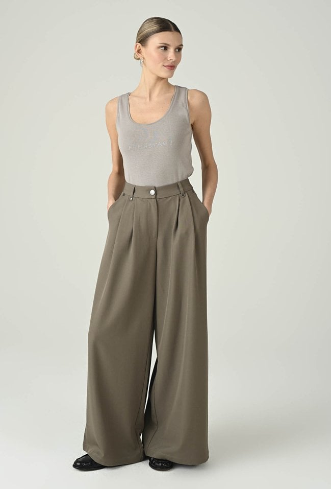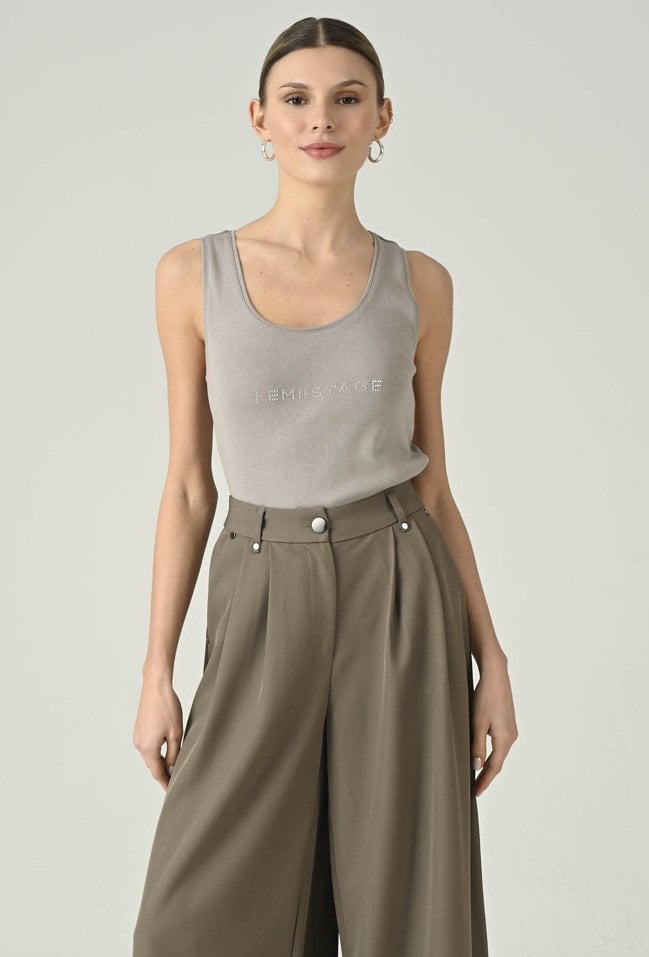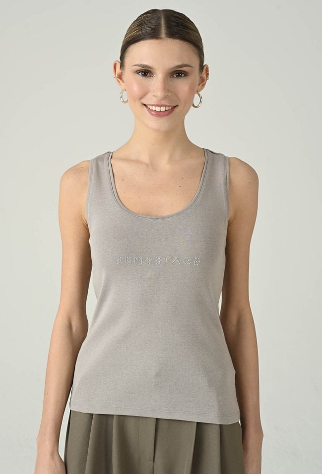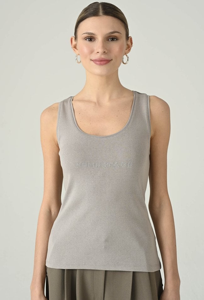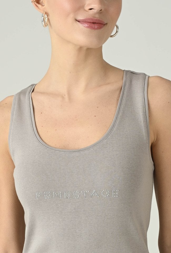 Minimalistyczny top w szarym odcieniu, który łączy wygodę z nowoczesnym detalem. Okrągły dekolt i dopasowany fason dobrze układają się na sylwetce, zapewniając komfort noszenia przez cały dzień. Subtelne logo Femestage na przodzie dodaje całości charakteru i delikatnie przełamuje klasyczną formę. Model świetnie sprawdzi się w codziennych stylizacjach — solo lub jako baza pod marynarkę, koszulę czy kardigan. Uniwersalny kolor sprawia, że top łatwo zestawisz z jeansami, spodniami materiałowymi i spódnicą.