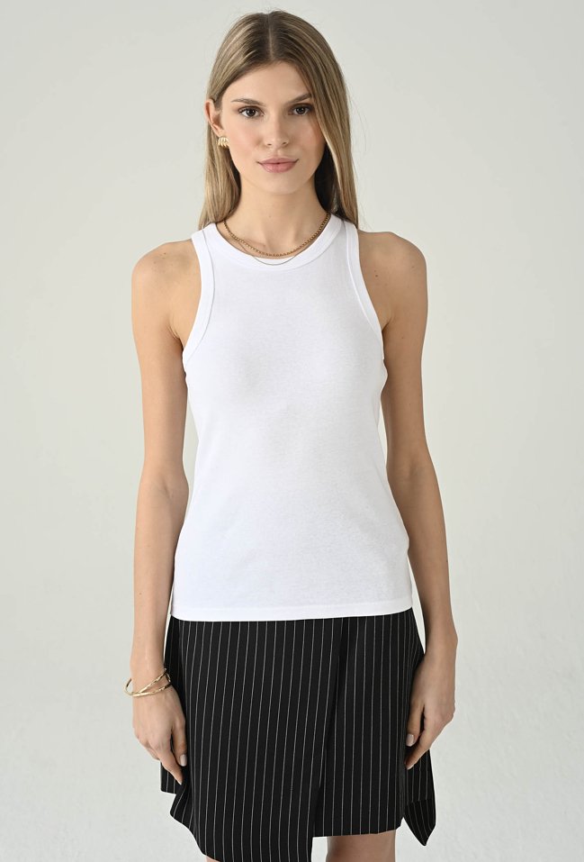 Top damski bez rękawów z okrągłym dekoltem