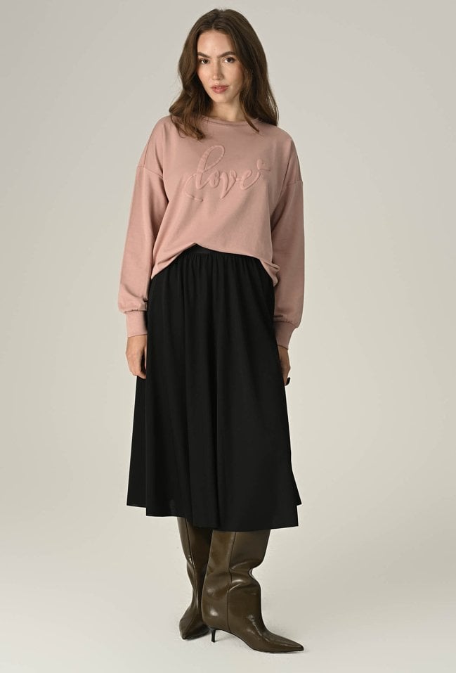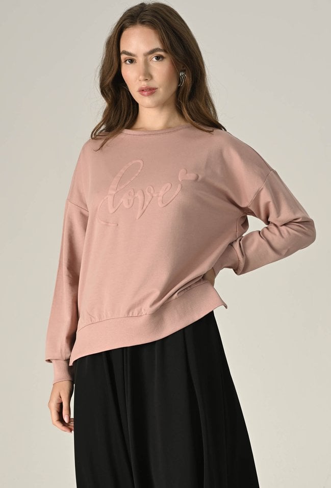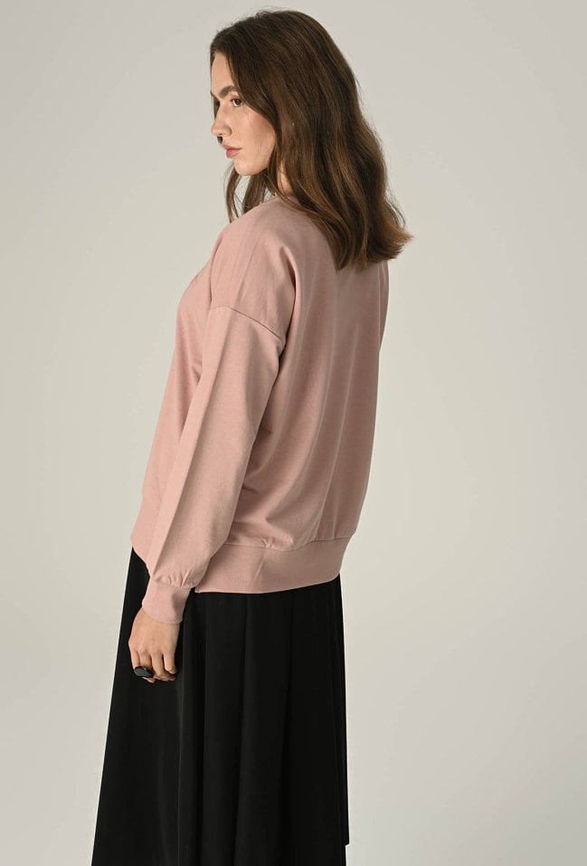 Bluzka w klasycznym fasonie, wykonana z przyjemnej w dotyku dzianiny bawełnianej. Na przodzie znajduje się ozdobna aplikacja. Bluza posiada okrągły dekolt, długi rękaw i brzegi wykończone ściągaczami. Idealnie sprawdzi się w codziennych stylizacjach. Modelka na zdjęciu ma 173 cm wzrostu i prezentuje rozmiar 36.