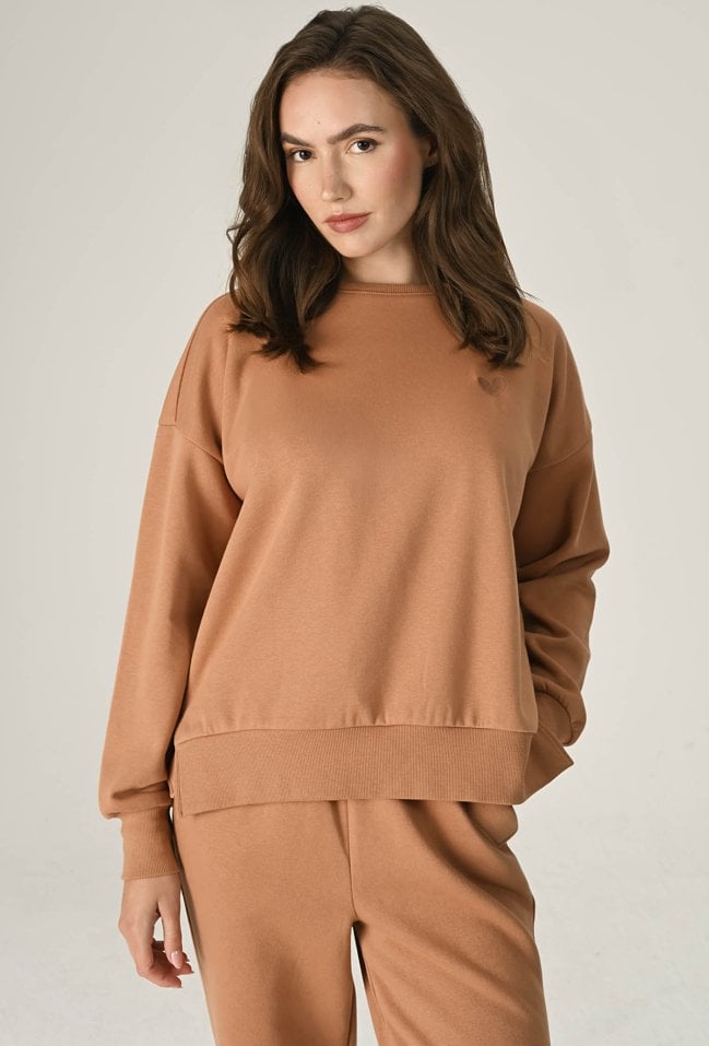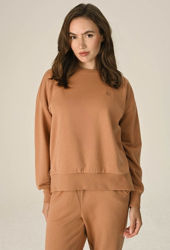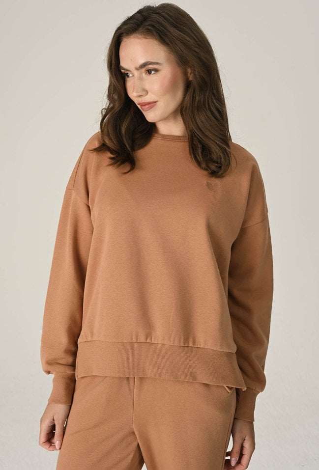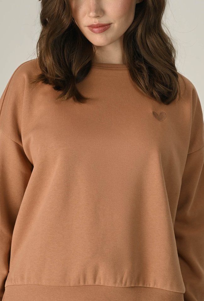 Klasyczna bawełniana bluza z miękkiej dzianiny to komfort i ponadczasowy styl w jednym. Długie rękawy oraz brzegi wykończone ściągaczami zapewniają doskonałe dopasowanie, a okrągły dekolt podkreśla uniwersalny charakter modelu. Subtelny haft na piersi dodaje delikatnego, wyjątkowego akcentu. Idealna na co dzień, łącząc wygodę z elegancją. Modelka na zdjęciu ma 173 cm wzrostu i prezentuje rozmiar S.