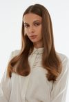 Wyjątkowa koszula to element garderoby, dzięki któremu stworzysz dziesiątki stylizacji zarówno na dzienne, jak i na wieczorowe okazje. Jest zapinana na całej długości na guziki, które przykryte są listwą. Front koszuli zdobią trzy plisy, czyniąc ją nietuzinkową. Luźny fason koszuli i materiał z wiskozy zapewni niezwykły komfort noszenia. Koszula pięknie prezentuje się ze spodniami i , z ołówkową spódnicą. To doskonała propozycja na wyjątkowe okazje. Modelka na zdjęciu ma 178 cm wzrostu i prezentuje rozmiar 36.