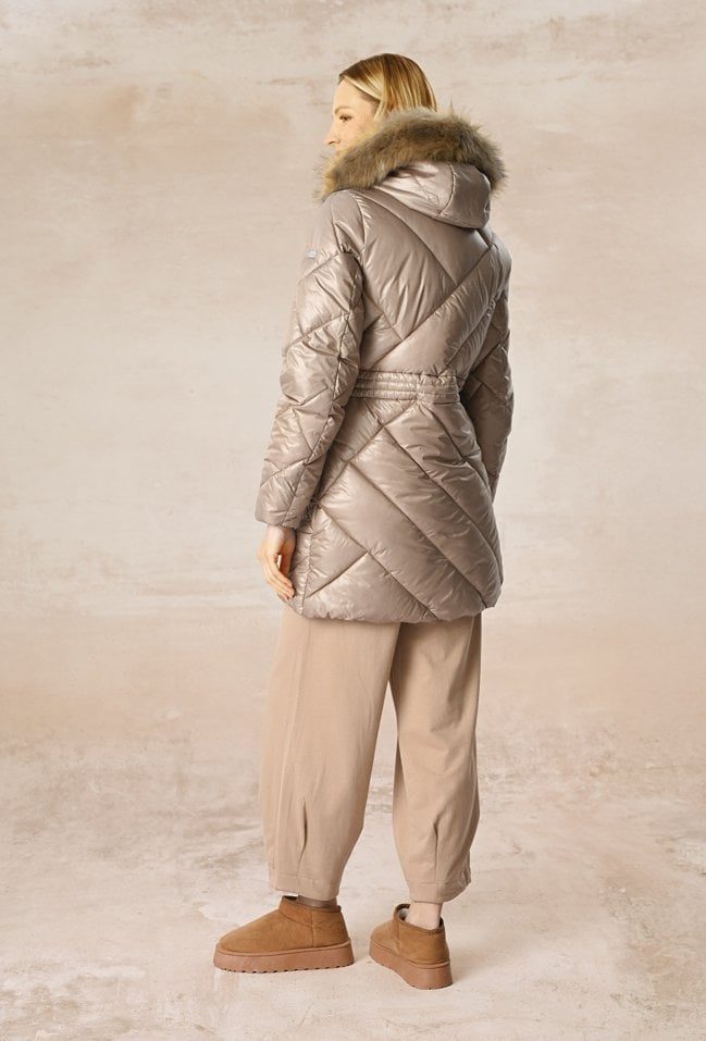 Długi pikowany płaszcz z kapturem