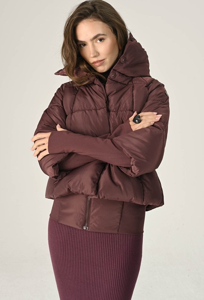 Stylowa, ciepła i wyjątkowo komfortowa — ta bordowym pikowana kurtka to idealny wybór na chłodniejsze dni. Wykonana z wysokiej jakości, gładkiego materiału o matowym wykończeniu, zapewnia doskonałą ochronę przed wiatrem i zimnem, a jednocześnie prezentuje się nowocześnie i elegancko. Krótszy, lekko pudełkowy fason pięknie podkreśla sylwetkę i świetnie komponuje się zarówno ze spodniami, jak i spódnicą. Wysoki kołnierz z możliwością zapięcia na napy dodaje całości charakteru i skutecznie chroni szyję przed chłodem. Kurtka posiada zapięcie na suwak i zatrzaski oraz wygodne boczne kieszenie. Modelka na zdjęciu ma 177 cm wzrostu i prezentuje rozmiar 36/S.