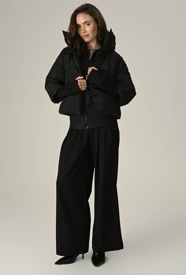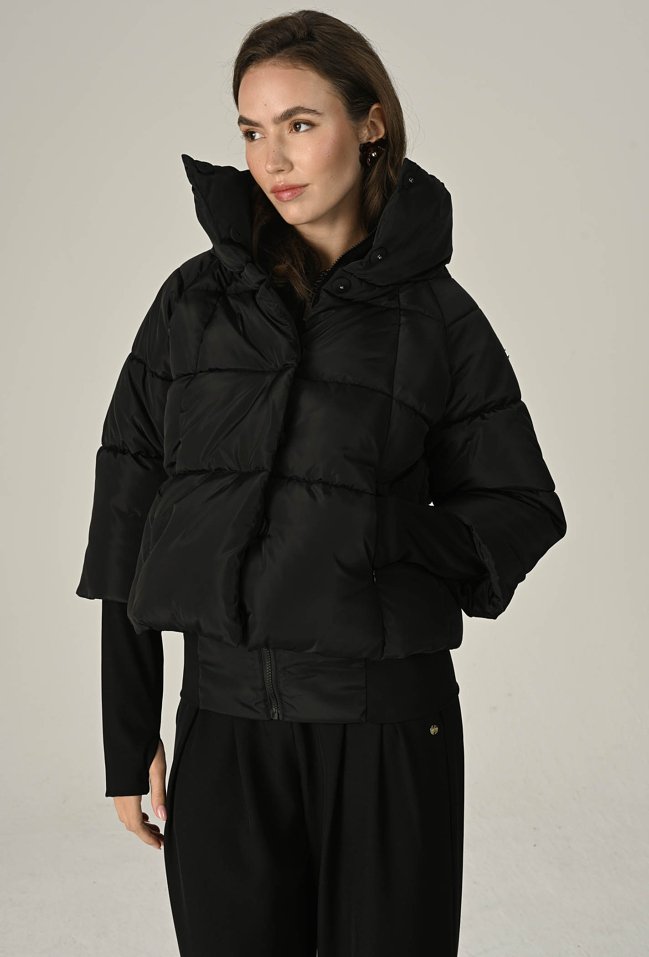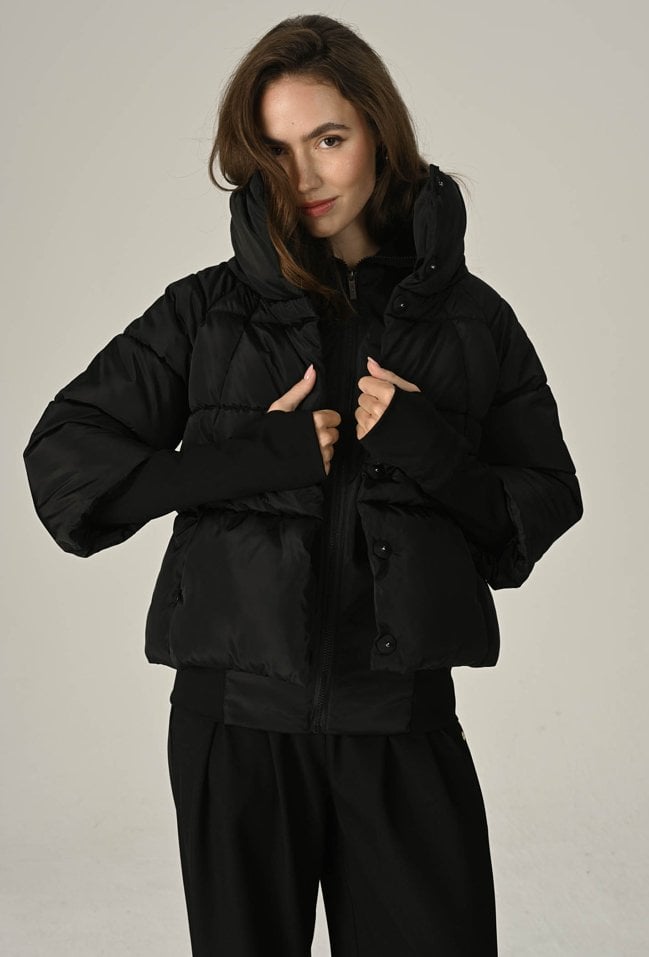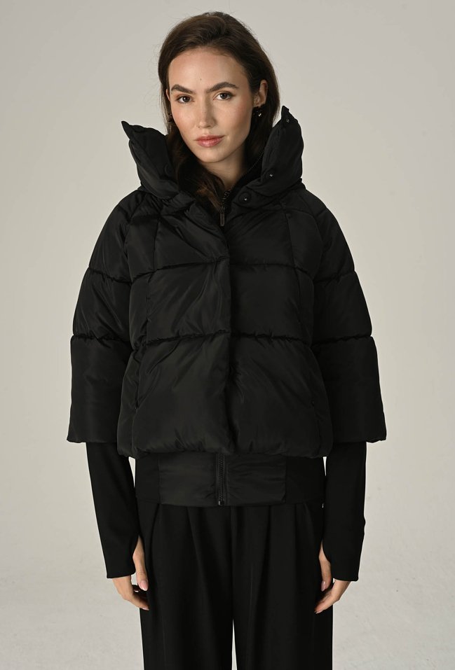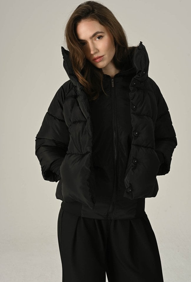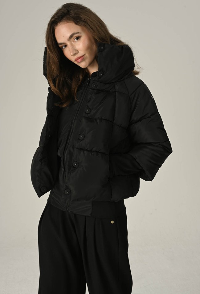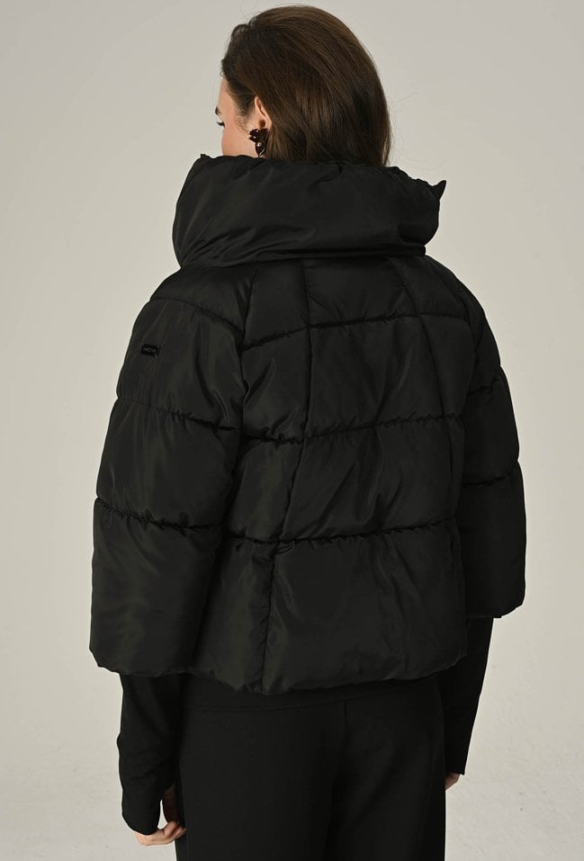 Czarna pikowana kurtka z wysokim kołnierzem