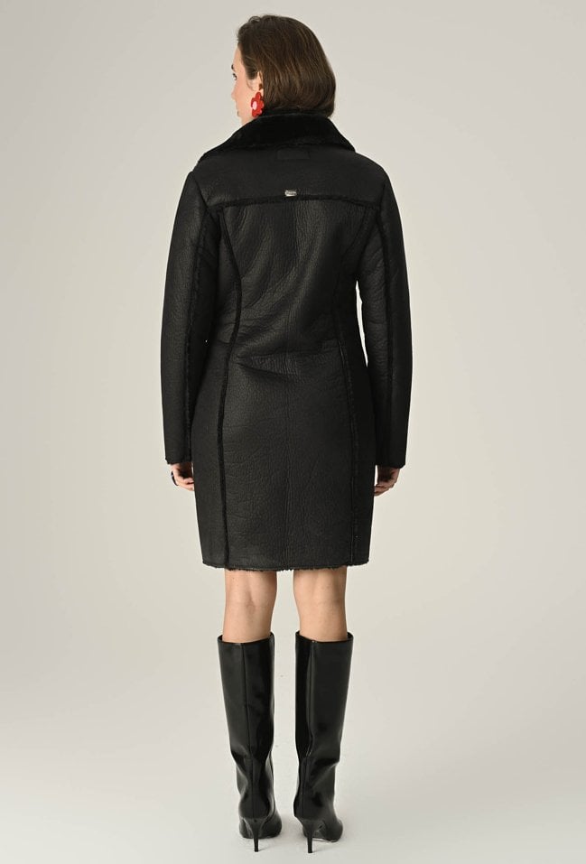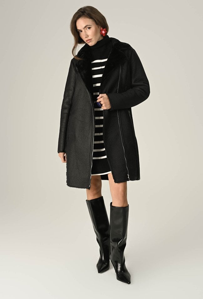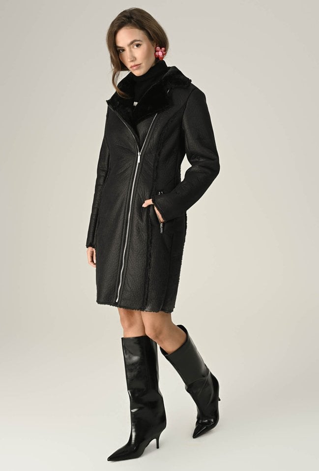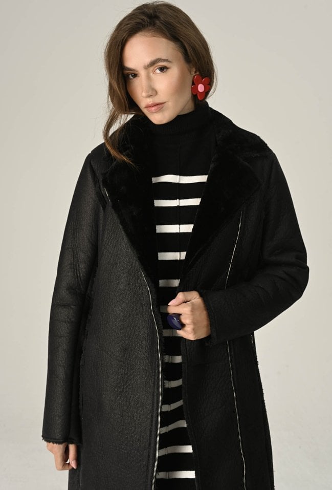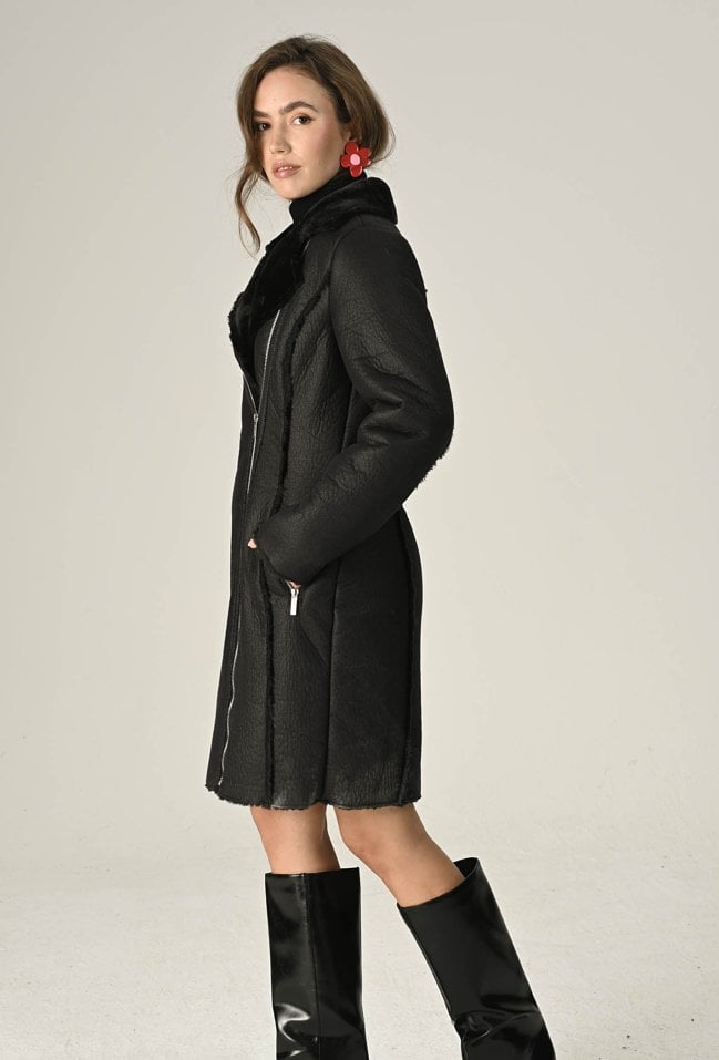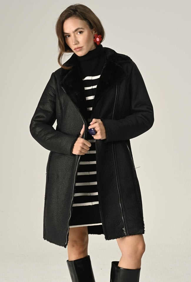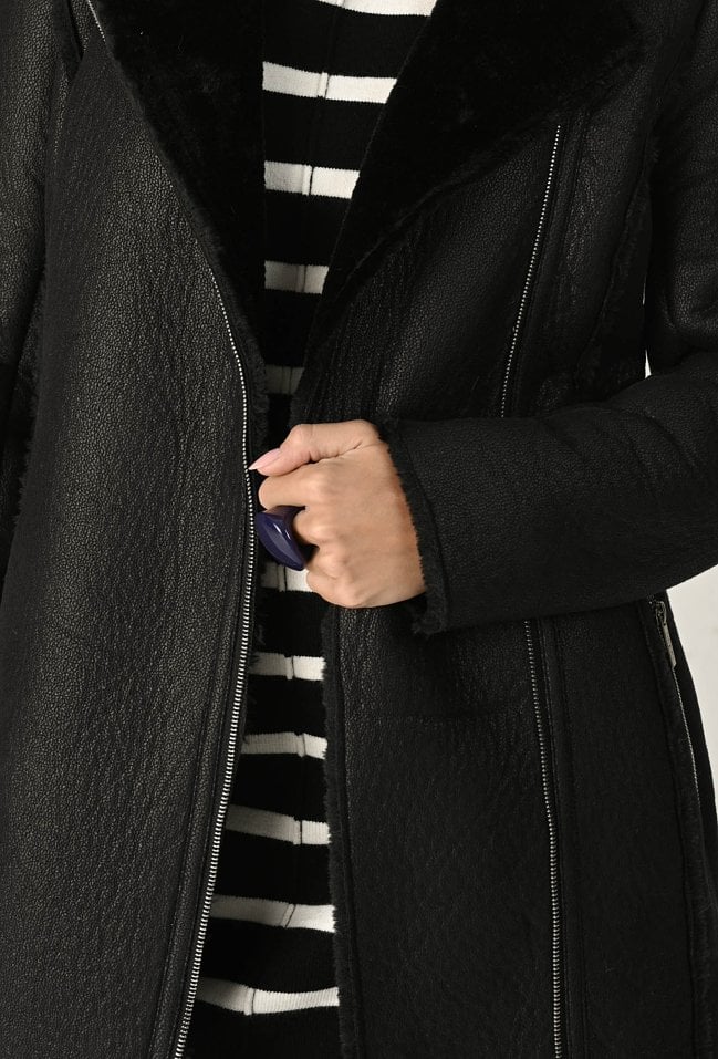 Długi kożuch zapinany na zamek