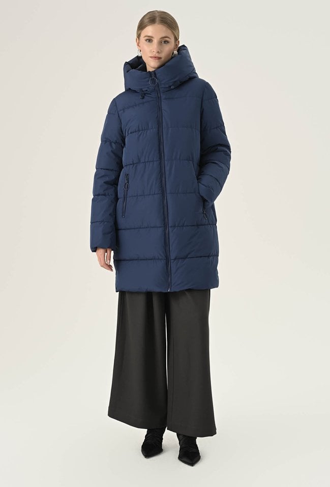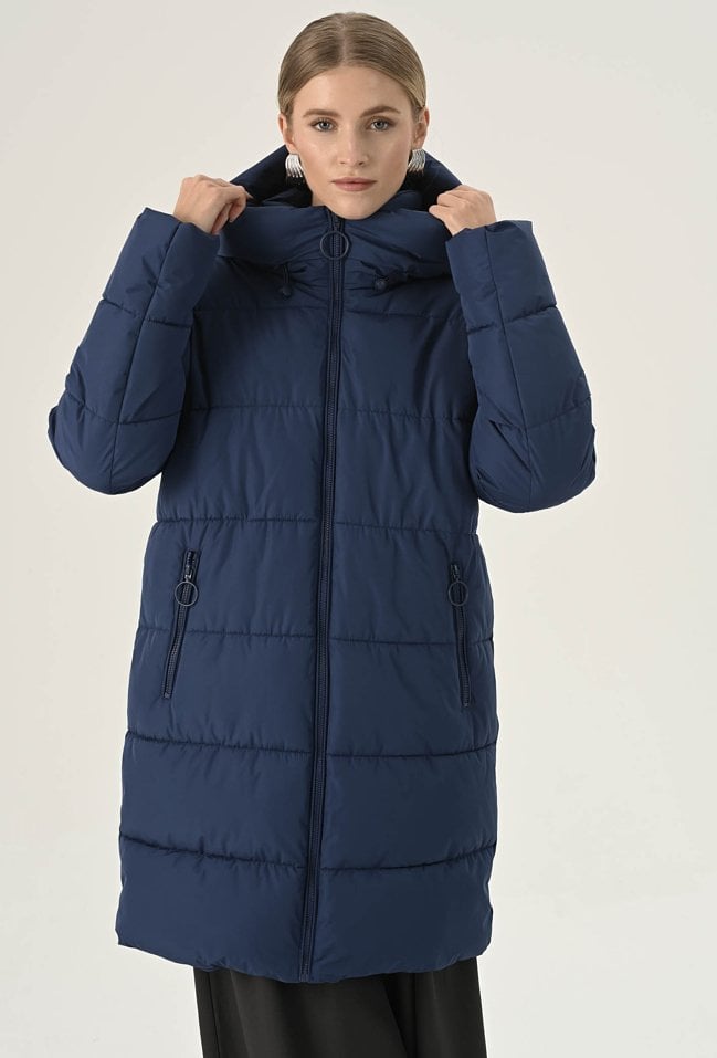 Czarna, ciepła kurtka o prostym kroju z kapturem, idealna na chłodne dni. Kurtka zapinana jest na zamek z ozdobnym kołem, co zapewnia wygodę i dodatkową ochronę przed chłodem. Posiada dwie praktyczne kieszenie, idealne na drobiazgi lub ogrzanie dłoni. To doskonały wybór dla kobiet ceniących połączenie funkcjonalności i elegancji — sprawdzi się zarówno w codziennych, jak i bardziej stylowych zestawach. Modelka na zdjęciu ma 177 cm wzrostu i prezentuje rozmiar 36/S.