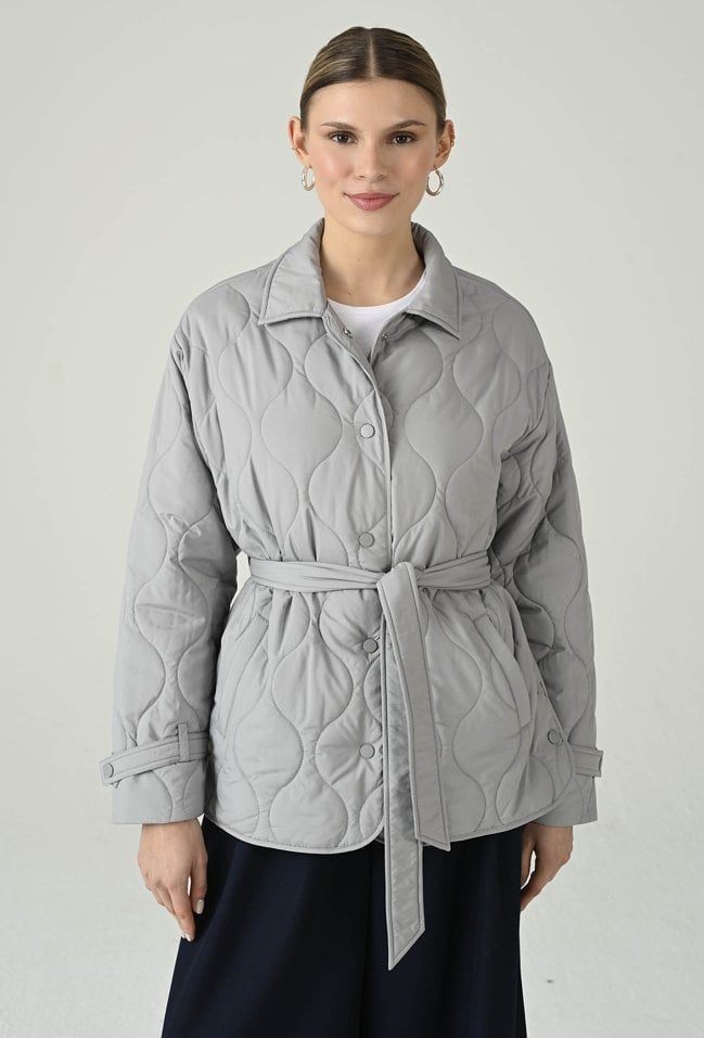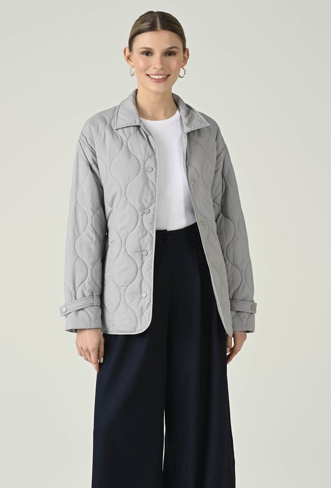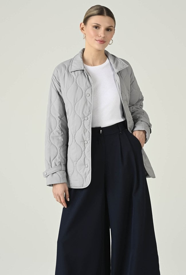Pikowana kurtka z obszernym kapturem z futerkiem