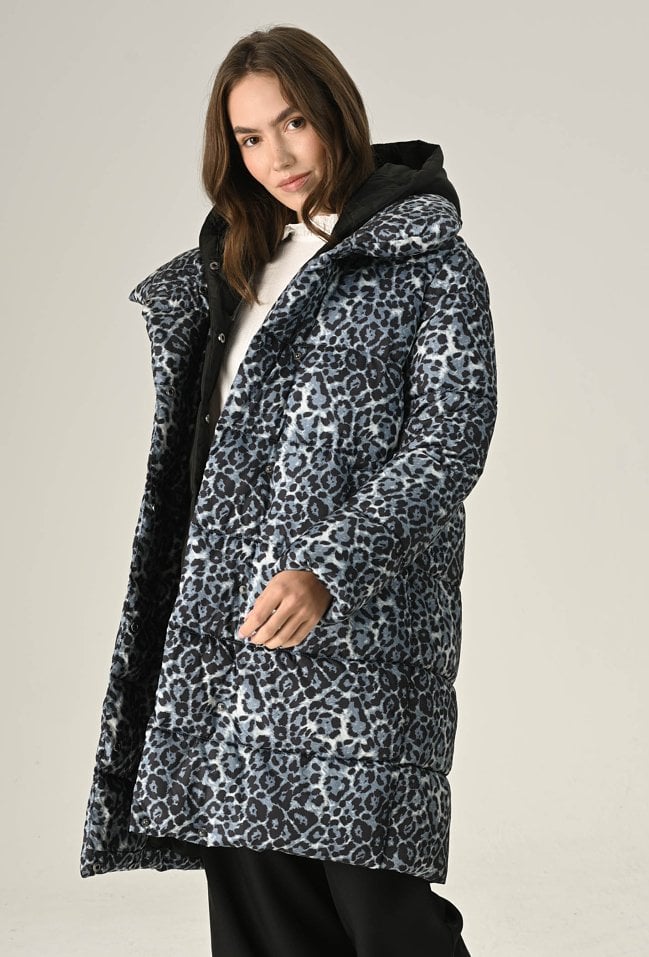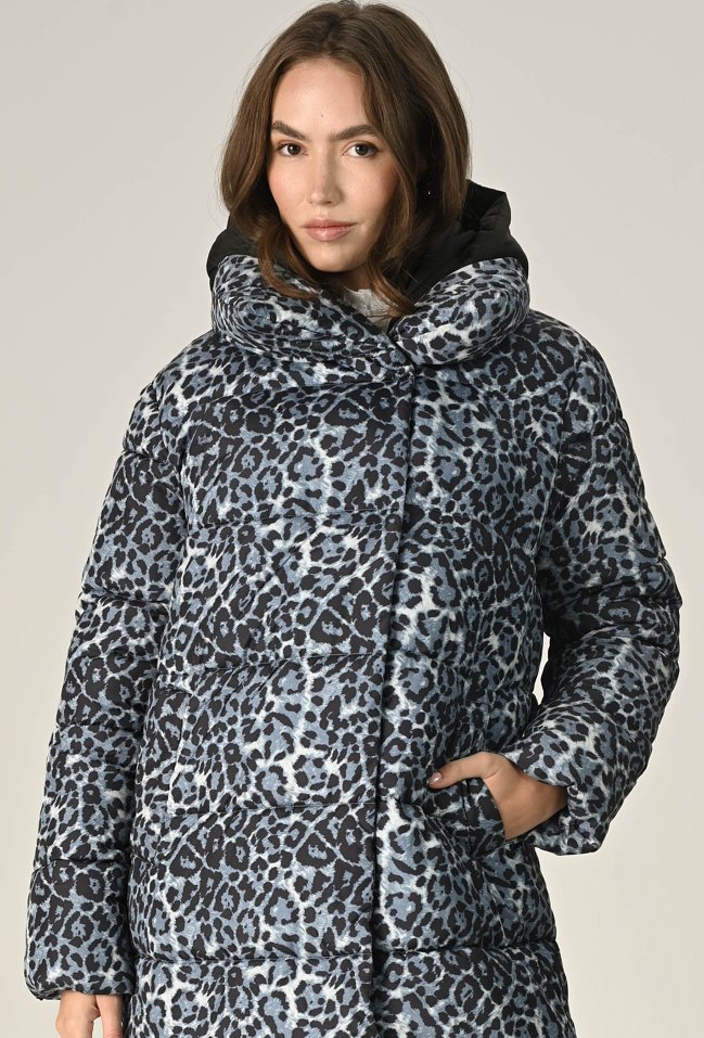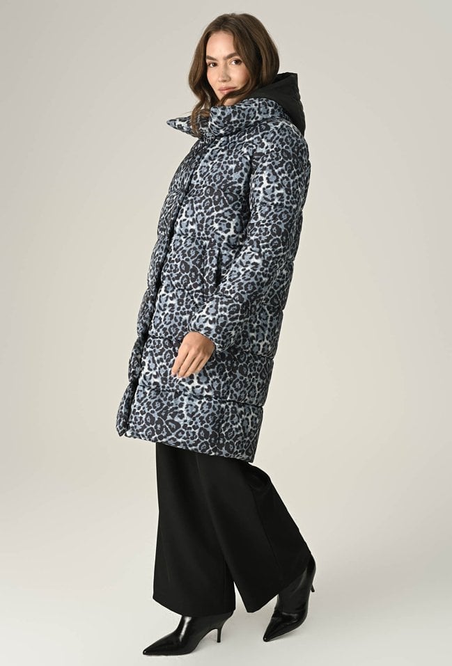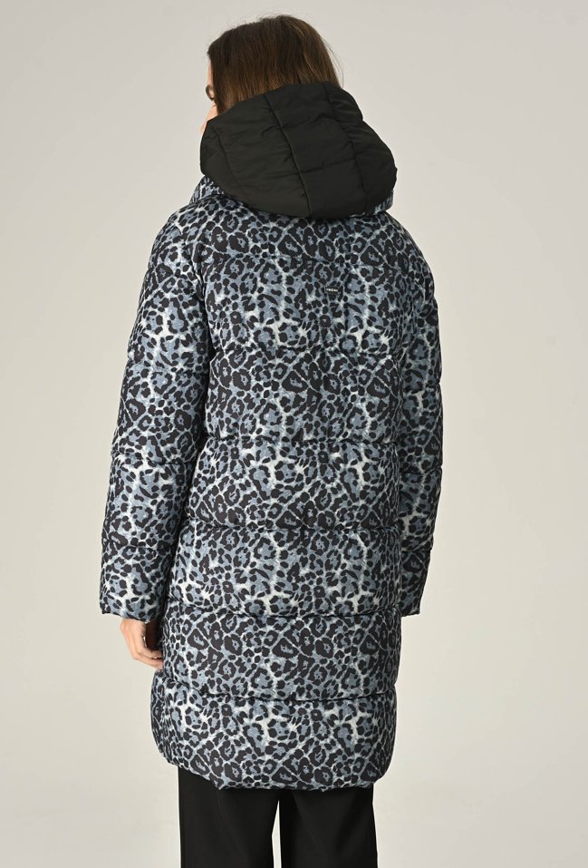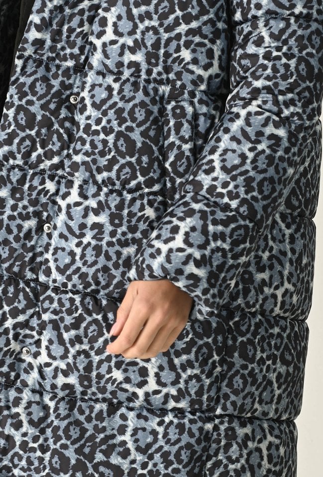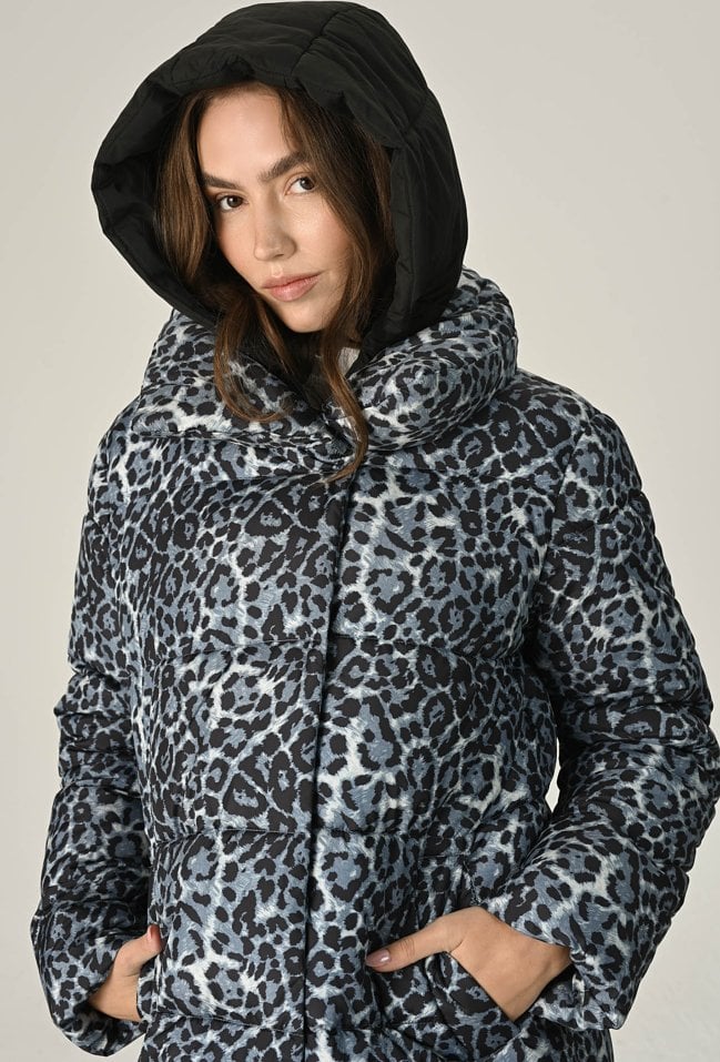 Pikowana kurtka w panterkę z kontrastowym kapturem