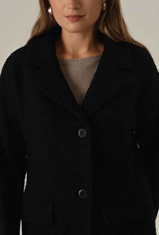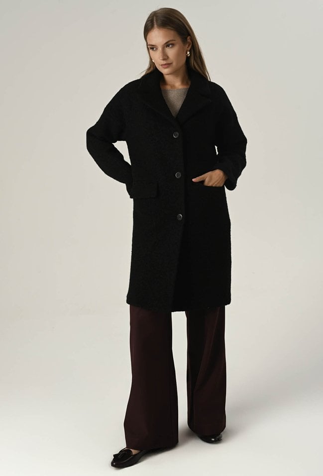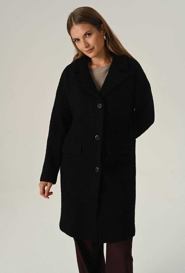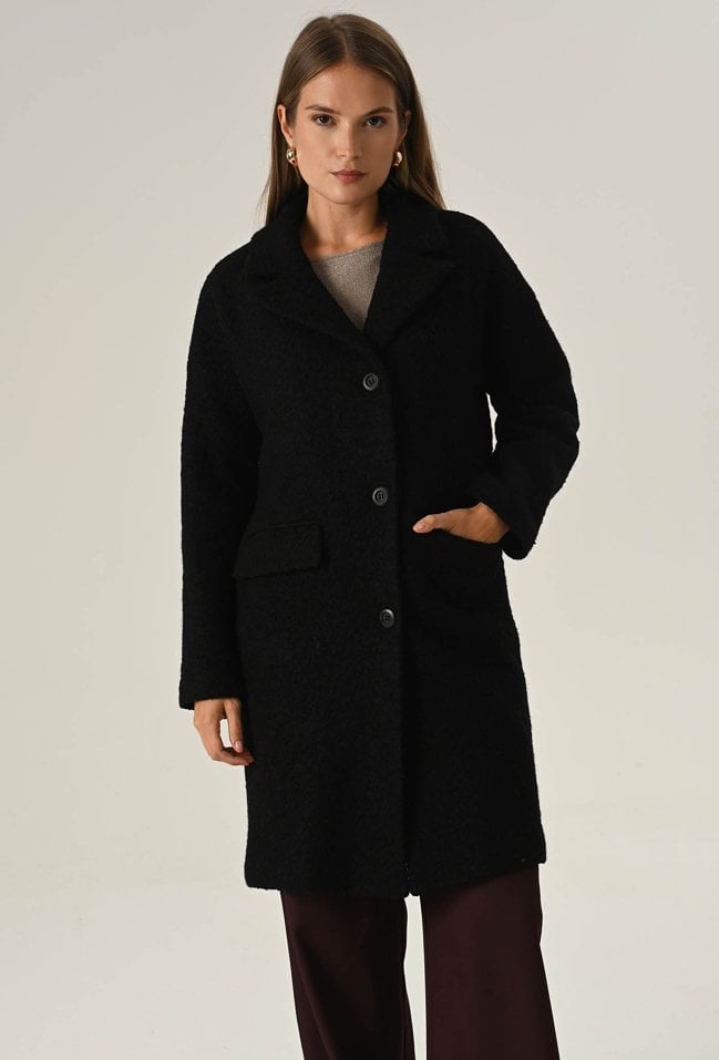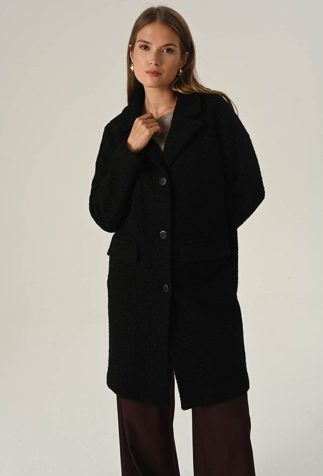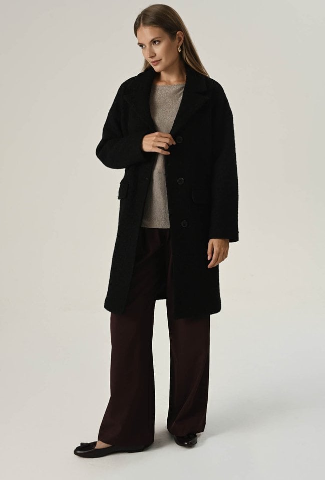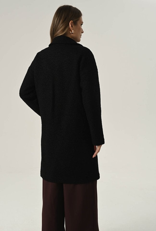 Płaszcz o prostym fasonie nakrapiany białą nicią