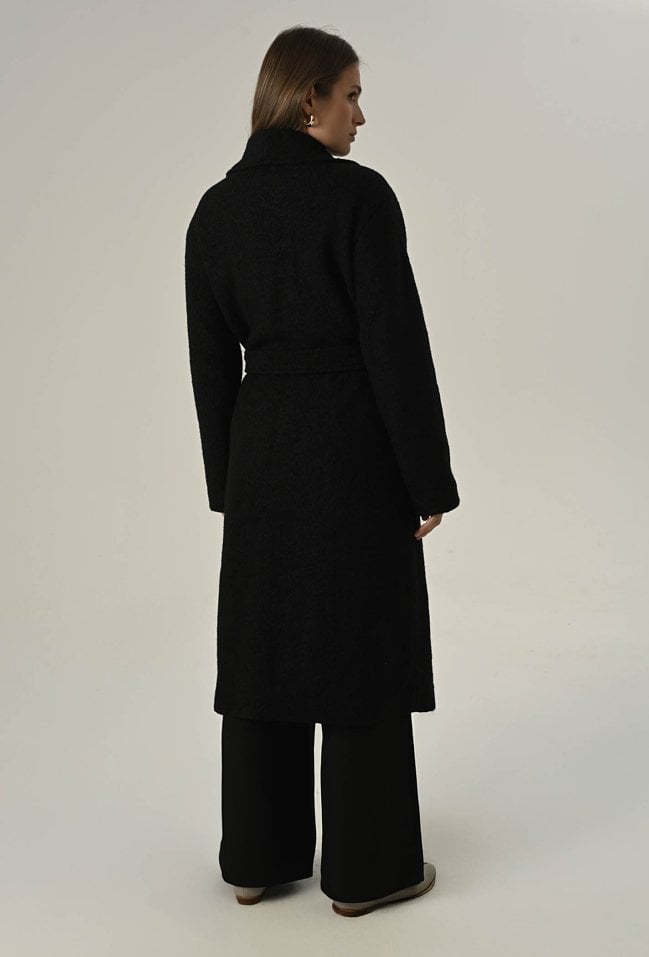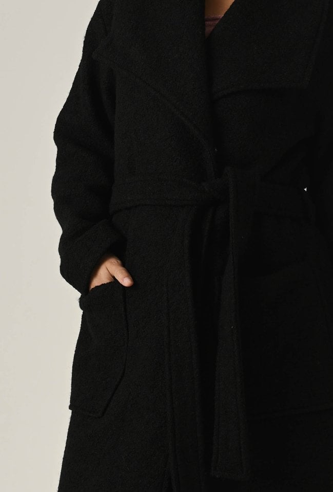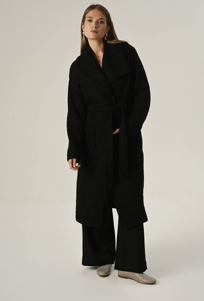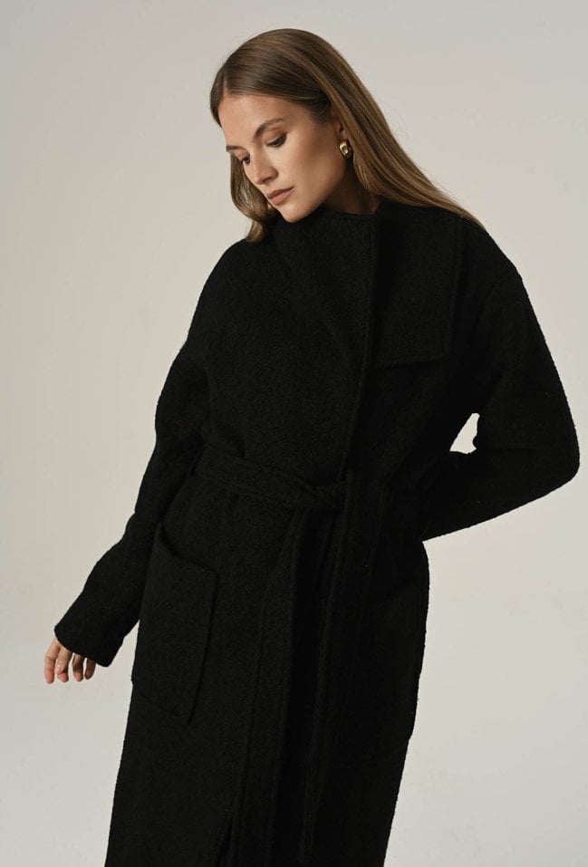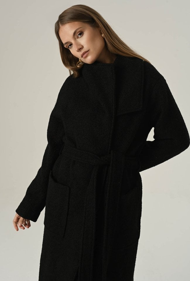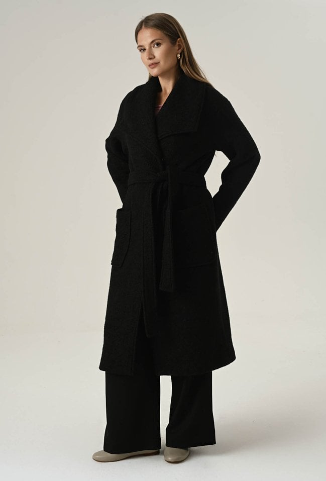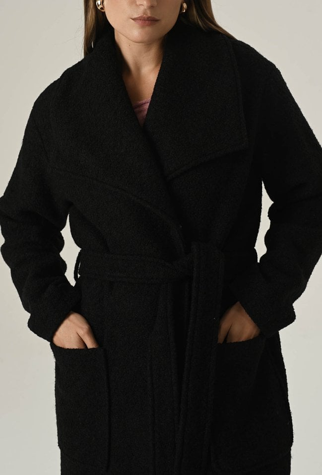 Styl i ciepło w nowoczesnym wydaniu! Długi płaszcz o fasonie kimona z 45% zawartością wełny to idealny wybór na chłodne dni. Model wyposażony w szerokie klapy, duże kieszenie i materiałowy pasek, który pięknie podkreśla talię. Klasyczna kolor z modnym akcentem sprawdzi się w każdej stylizacji. Dostępny w dwóch wyrazistych kolorach – eleganckiej czerni i energetycznej czerwieni. Wybierz swój i noś z pewnością siebie! Modelka na zdjęciu ma 175 cm wzrostu i prezentuje