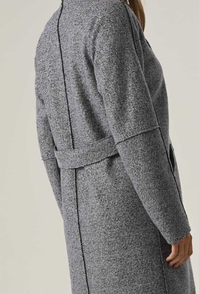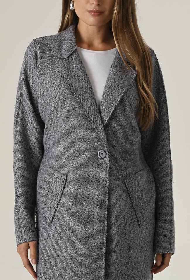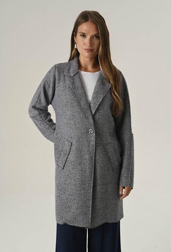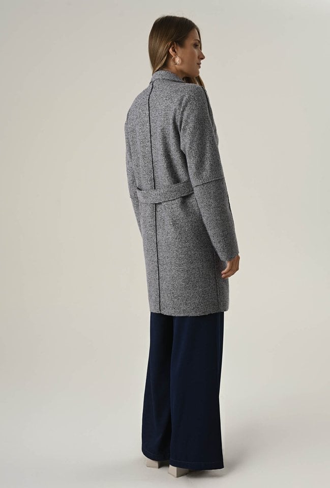 Płaszcz o prostym fasonie nakrapiany białą nicią
