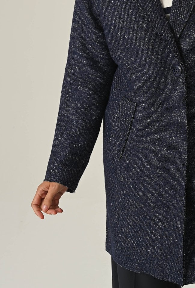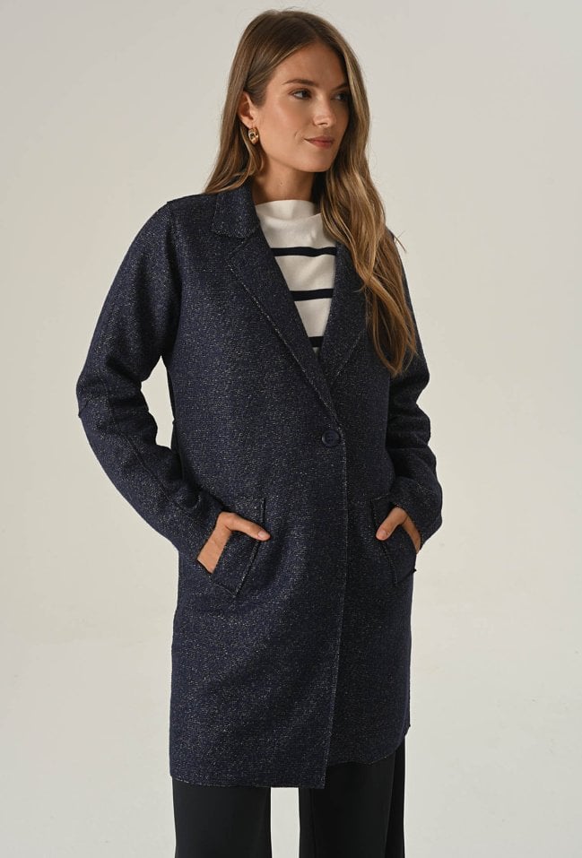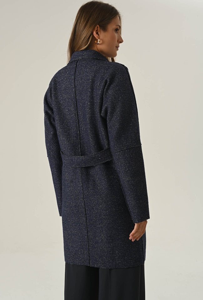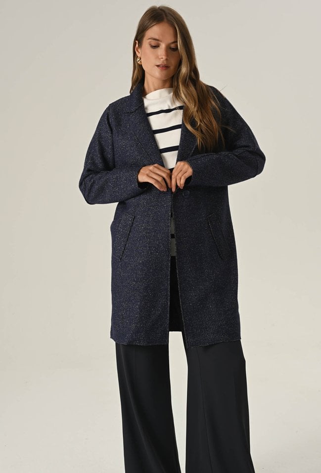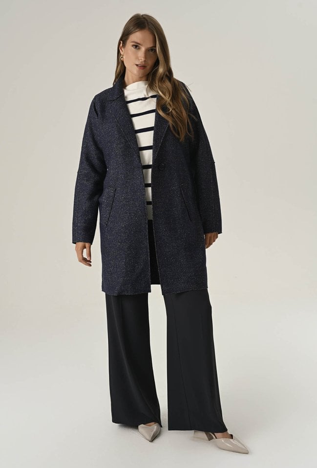 Płaszcz o prostym fasonie nakrapiany białą nicią