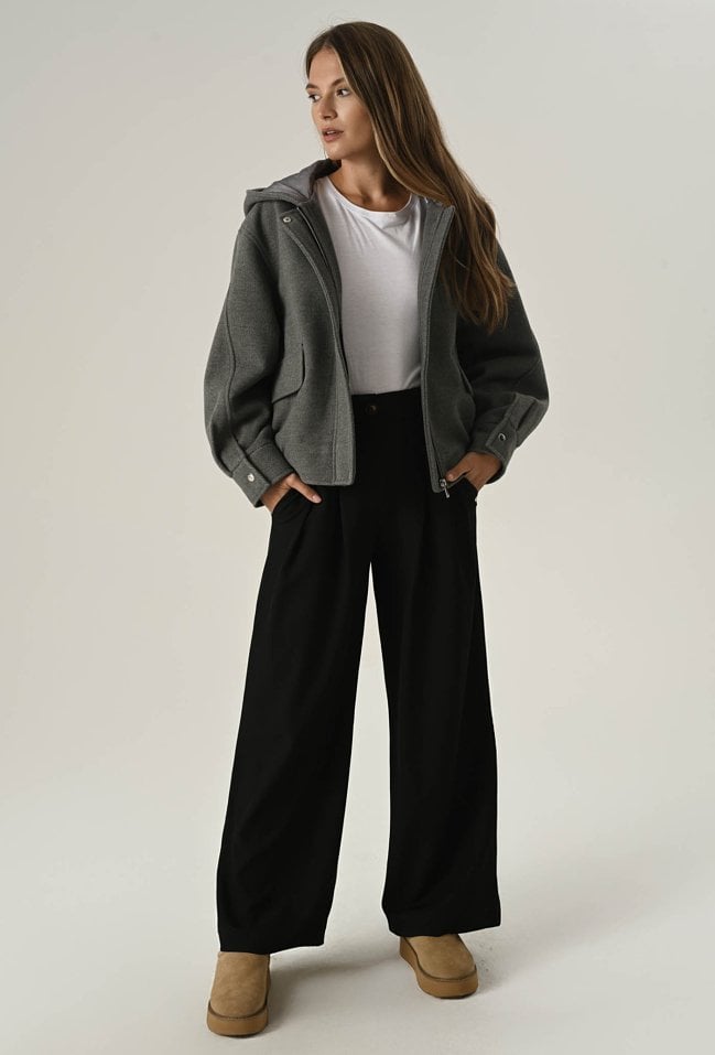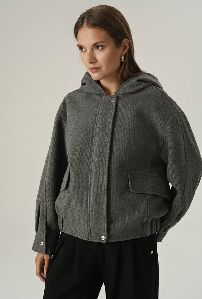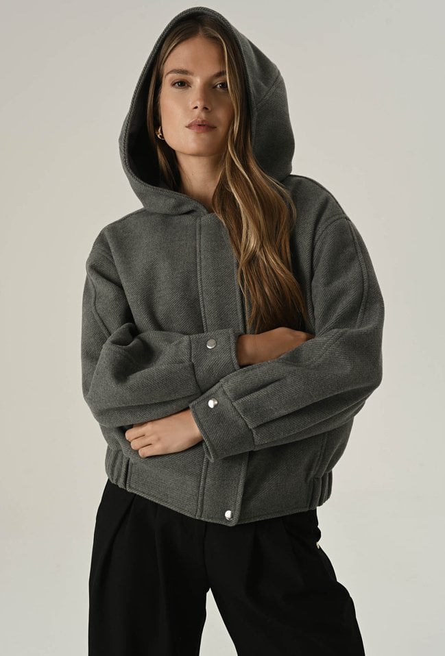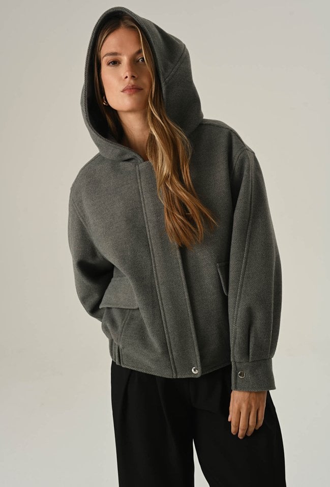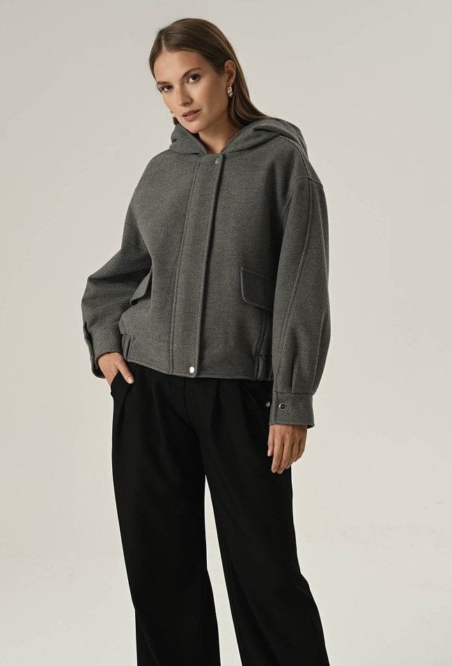 Postaw na luz i wygodę! Oversizowa bomberka w szarym kolorze to królowa miejskiego szyku z utylitarnym stylem. Wygodny kaptur, ściągacz na dole i duże kieszenie z przodu dodają jej praktyczności i miejskiego charakteru. Zapinana na zamek, świetnie sprawdzi się zarówno w codziennych stylizacjach, jak i w bardziej sportowym wydaniu. Must-have dla fanek swobodnego stylu! Modelka na zdjęciu ma 175 cm wzrostu i prezentuje