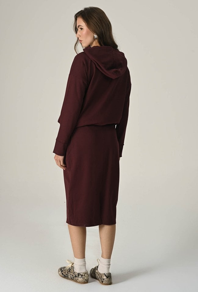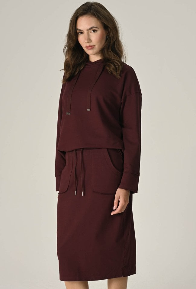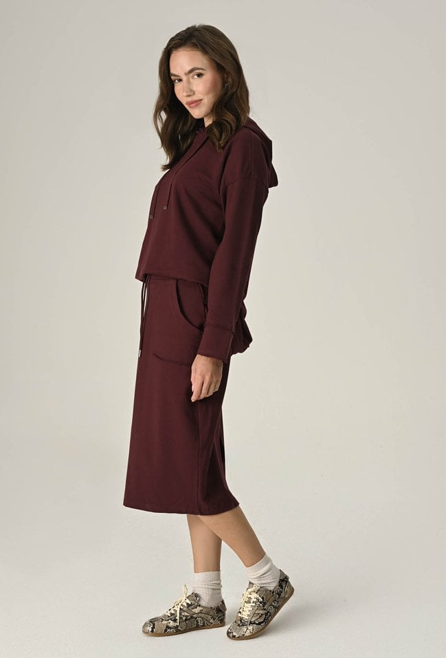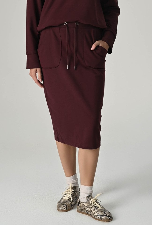 Bawełniana, wygodna spódnica midi to idealna propozycja dla kobiet ceniących sobie wygodę i styl. Elastyczna guma w pasie gwarantuje idealne dopasowanie do Twojej sylwetki, a kieszenie dodają funkcjonalności. Wykonana z przyjemnej, bawełnianej dzianiny zapewni Ci komfort noszenia przez cały dzień, a surowe wykończenie nadaje modowego charakteru. Spódnica świetnie sprawdzi się w codziennych stylizacjach. Modelka na zdjęciu ma 173 cm wzrostu i prezentuje rozmiar 36.