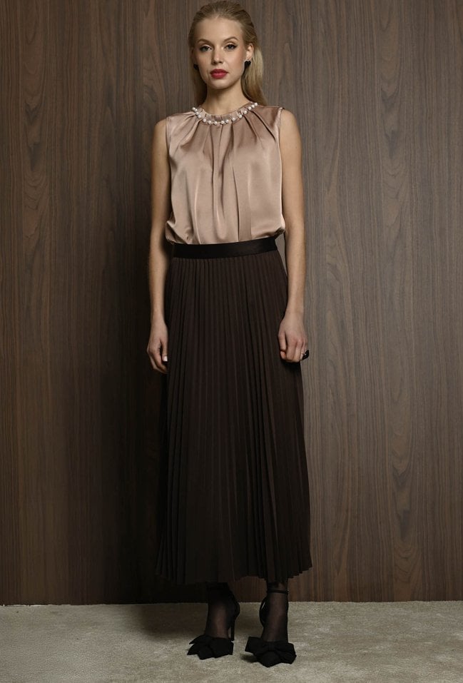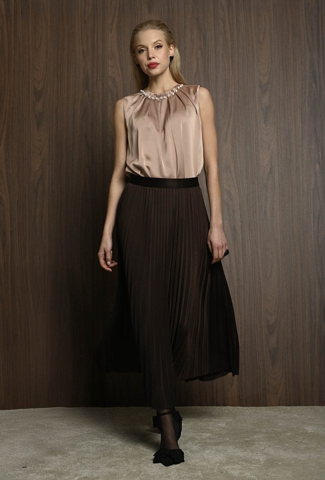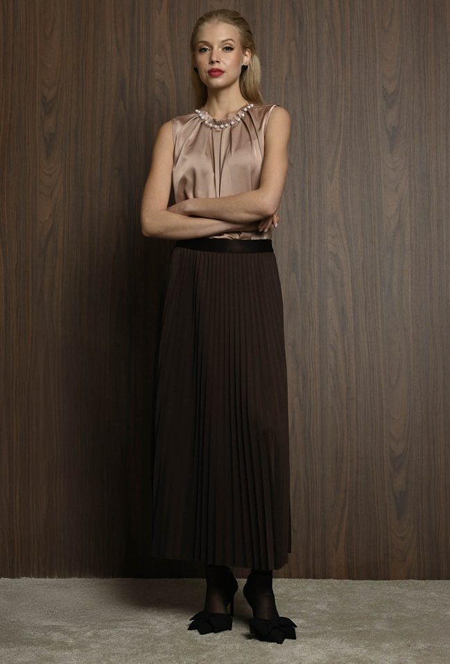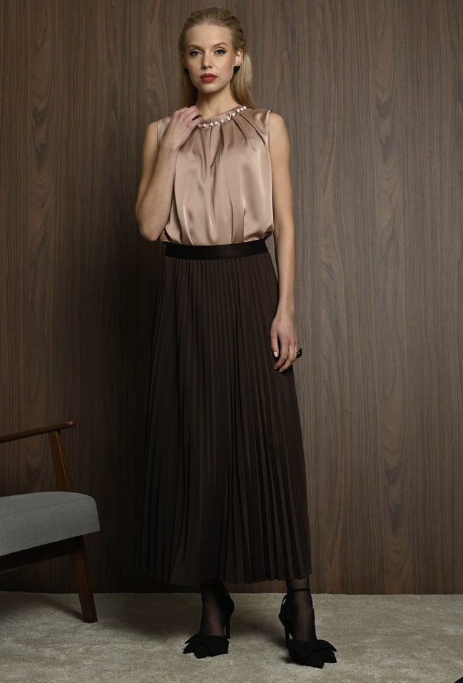 Czekoladowa plisowana spódnica