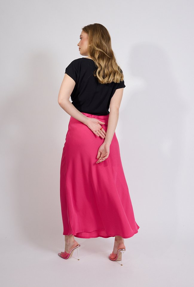 Spódnica damska o eleganckim, ponadczasowym kroju. Model o długości maxi z lekko rozszerzanym dołem, który pięknie układa się na sylwetce i nadaje stylizacji lekkości. Minimalistyczny fason sprawia, że spódnica prezentuje się niezwykle stylowo i kobieco. Modelka na zdjęciu ma 177 cm wzrostu i prezentuje rozmiar 36.