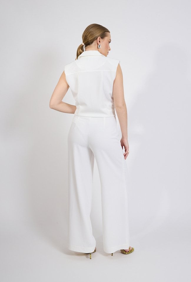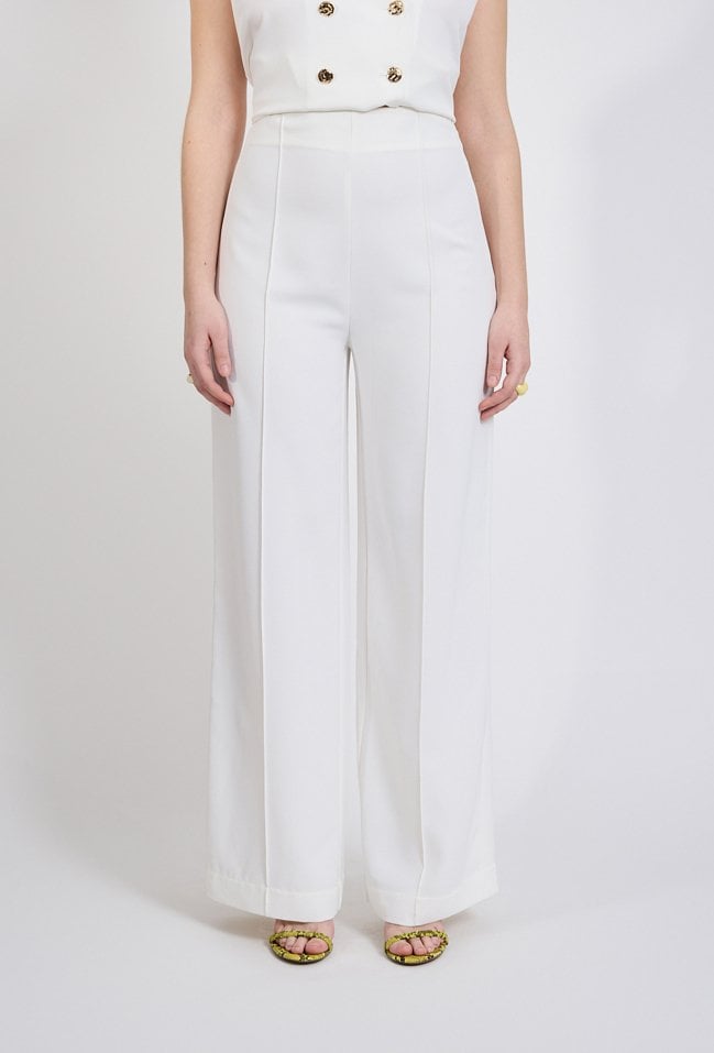 Spodnie damskie o eleganckim, klasycznym kroju. Model z wysokim stanem oraz szerokimi, prostymi nogawkami, które optycznie wydłużają sylwetkę i nadają stylizacji nowoczesnego charakteru. Minimalistyczny fason sprawia, że spodnie doskonale układają się na sylwetce i zapewniają komfort noszenia.