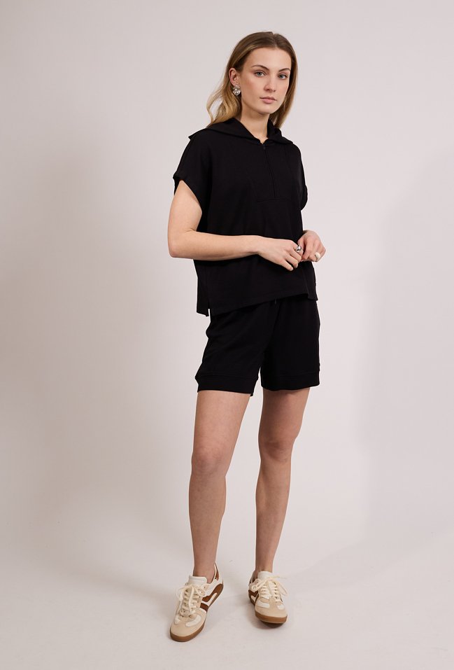 Stylowe spodenki damskie o prostym, wygodnym kroju. Model z elastycznym pasem, który zapewnia komfort noszenia i dobre dopasowanie do sylwetki. Spodenki doskonale sprawdzą się w codziennych i sportowych stylizacjach, na spacery oraz aktywny wypoczynek. Modelka na zdjęciu ma 177 cm wzrostu i prezentuje rozmiar S.