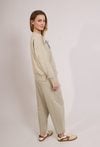 Stylowe spodnie dresowe damskie o luźnym kroju. Model z elastycznym pasem oraz ściągaczami przy nogawkach, które zapewniają wygodę i dobre dopasowanie. Spodnie doskonale sprawdzą się w codziennych i sportowych stylizacjach, gwarantując komfort i swobodę ruchów. Modelka na zdjęciu ma 177 cm wzrostu i prezentuje rozmiar S.