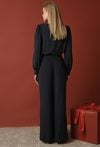 Eleganckie spodnie z szeroką nogawką to doskonały wybór dla miłośniczek ponadczasowego stylu z nutą nowoczesnej elegancji. Wysoki stan pięknie podkreśla talię, a szerokie, lekko wydłużone nogawki optycznie wysmuklają sylwetkę. Dwie zaszewki z przodu dodają całości elegancji i wyrafinowanego charakteru. spodnie występuję w komplecie z bluzką. Modelka na zdjęciu ma 177 cm wzrostu i prezentuje rozmiar 36.