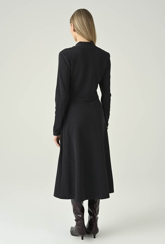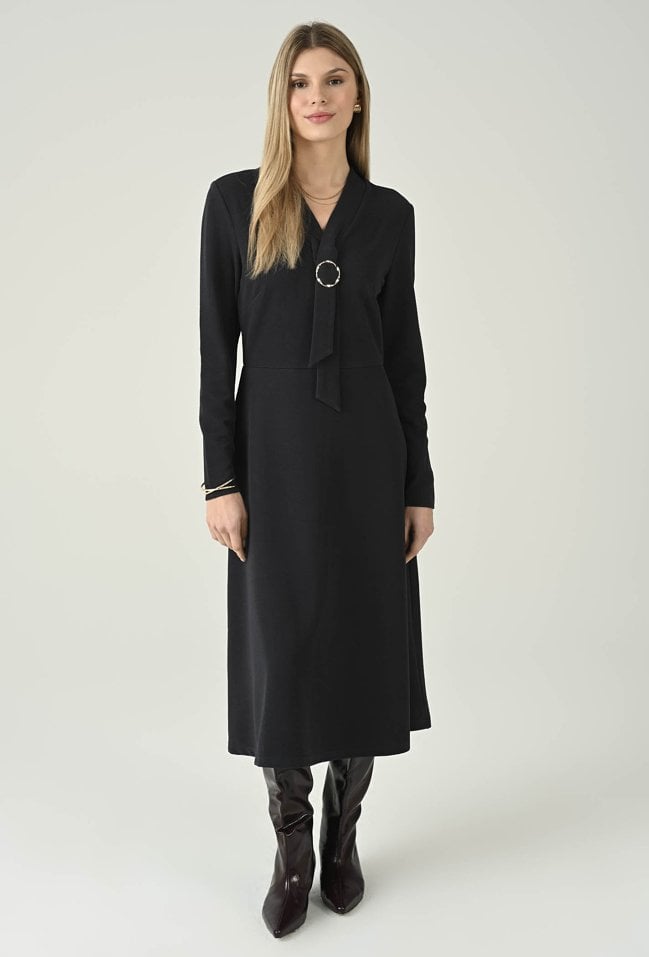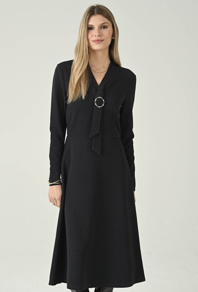 Dzianinowa sukienka midi z ozdobną klamrą