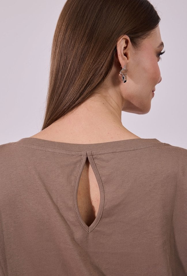 Sukienka damska o luźnym, swobodnym kroju mini z krótkim rękawem. Model z klasycznym, okrągłym dekoltem oraz podwiniętymi rękawami, które nadają całości casualowego charakteru. Minimalistyczny fason sprawia, że sukienka doskonale sprawdzi się w codziennych stylizacjach, gwarantując wygodę i ponadczasowy wygląd.