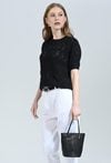 Sweter z krótkim rękawem o prostym kroju wykonany z delikatnej, ażurowej dzianiny, to doskonały sposób na optyczne rozświetlenie Twoich wiosennych stylizacji. Klasyczny czarny kolor pięknie prezentuje się w towarzystwie różnych typów urody, a ażurowa dzianina dodaje niezwykłej lekkości. Sweter został wykonany z bawełnianej przędzy. Modelka na zdjęciu ma 178 cm wzrostu i prezentuje rozmiar 36.