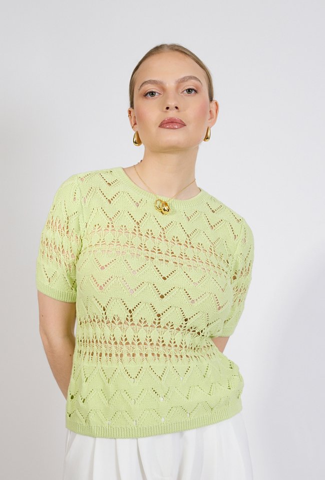 Ażurowy sweter z krótkim rękawem