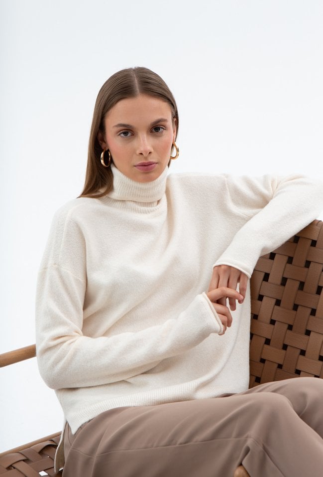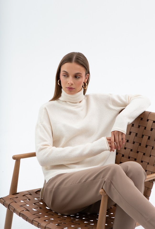 Śmietankowy sweter z domieszką wełny