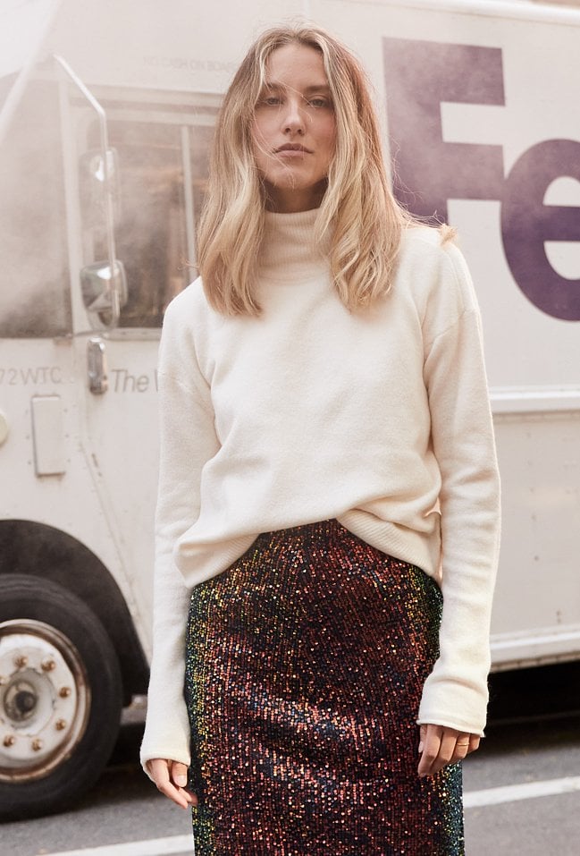 Biały golf ogrzeje Cię w chłodne letnie wieczory i jesienne dni. Jest wykonany z mięsistej dzianiny. Posiada długi rękawy zakończone ściągaczem natomiast obniżona linia ramion dodaje mu luźnego charakteru. Będzie świetnie prezentował się do codziennych stylizacji i nie tylko. Modelka na zdjęciu ma 178 cm wzrostu i prezentuje rozmiar 36.