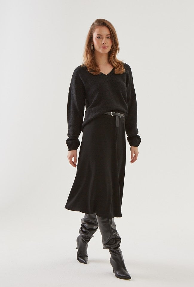 Czarny sweter w v-nek