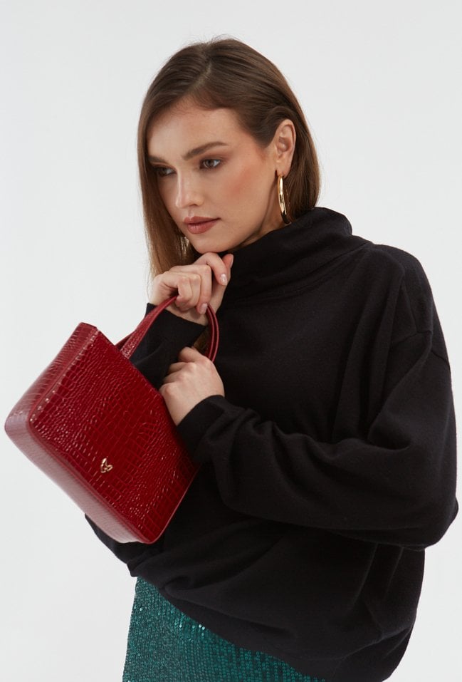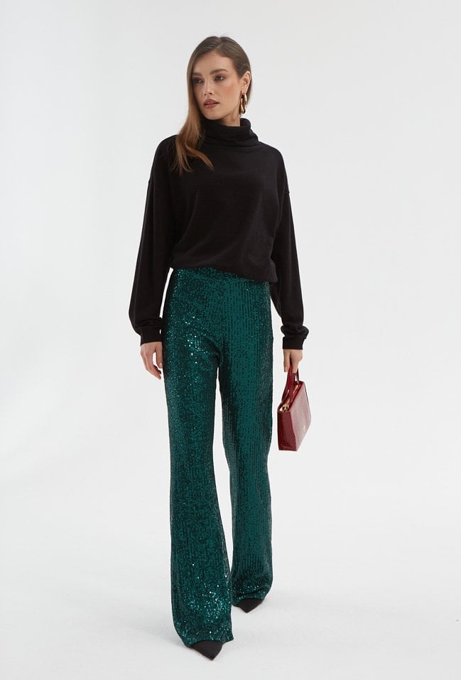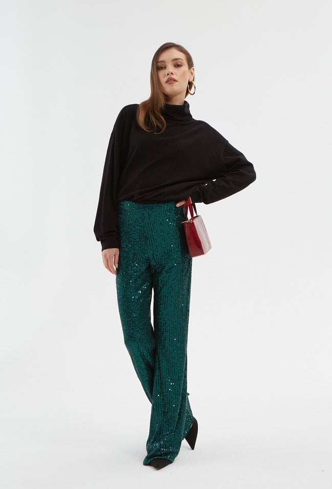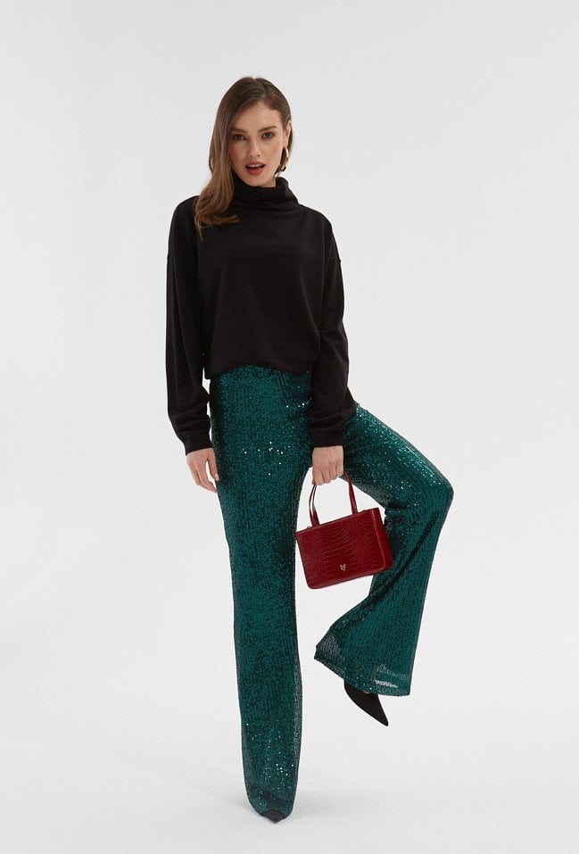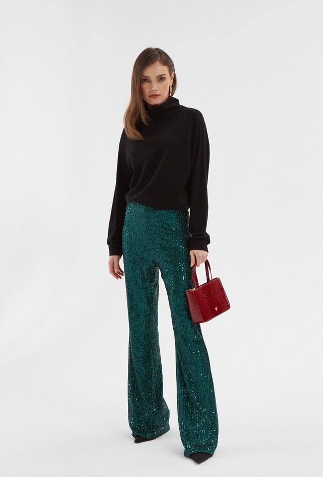Karmelowy sweter z golfem wykonany z przyjemnej dla skóry dzianiny o gładkim splocie. Doskonały do casualowych stylizacji. Ma ciepły, kremowy odcień , który pięknie komponuje się zarówno z jesienną paletą barw, jak i z wieloma innymi kolorami. Luźny golf miękko układa się wokół szyi i zapewnia komfort noszenia także w chłodne dni. Modelka na zdjęciu ma 178 cm wzrostu i prezentuje rozmiar ś.