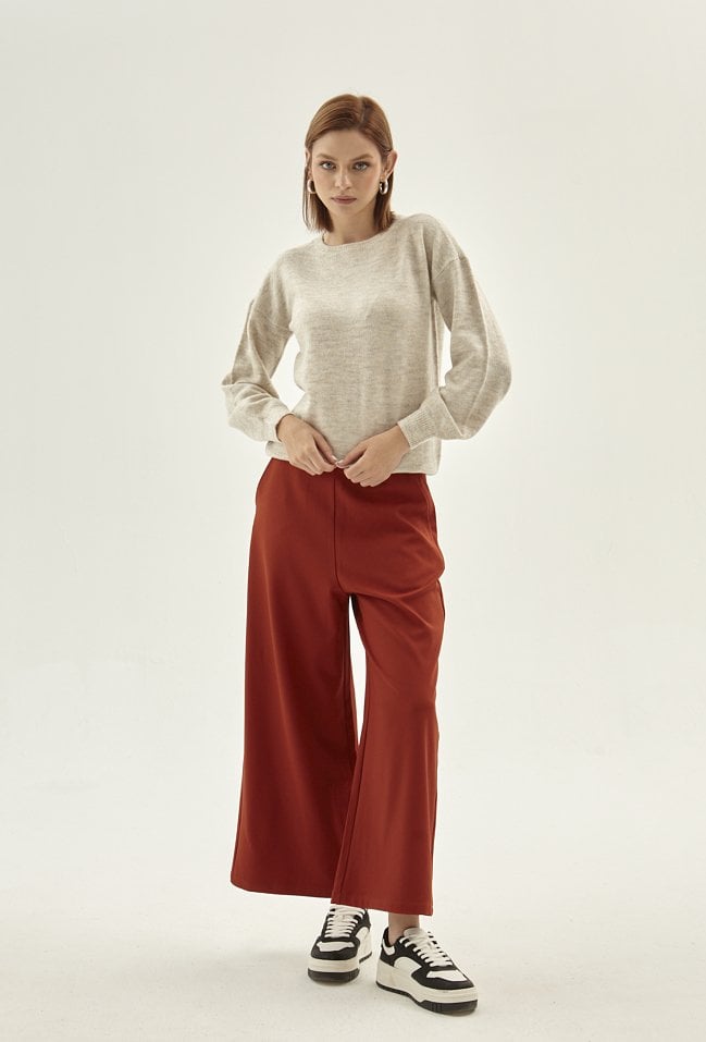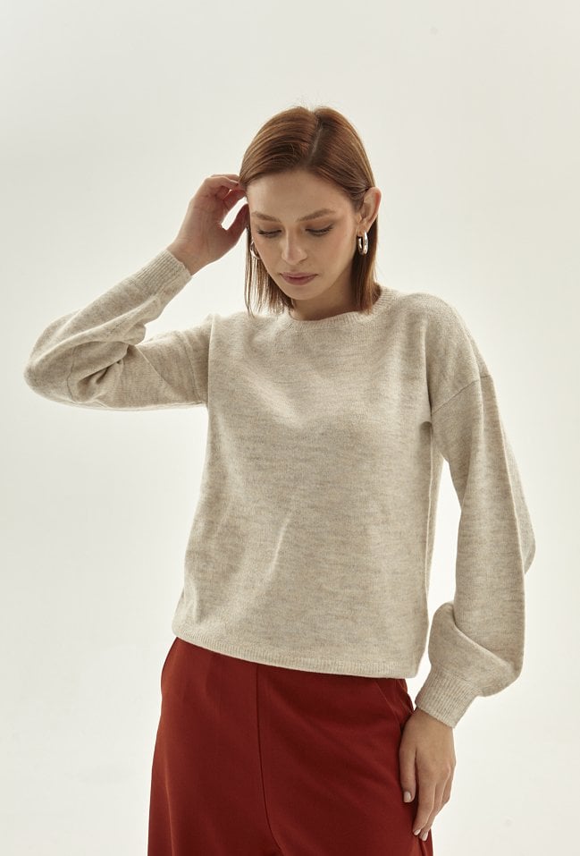 Sweter w pięknym beżowym odcieniu, został wykonany z miękkiej, przyjemnej dzianiny. Ma delikatnie oversize'owy fason , obniżona linie ramion to czyni go bardzo uniwersalnym. Sweter sprawdzi się do codziennych do tego będzie nas ogrzewał clą jesień i zimę. Modelka na zdjęciu ma 175 cm wzrostu i prezentuje rozmiar S.