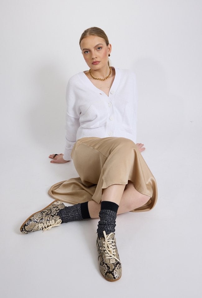 Beżowa spódnica z imitacji skóry