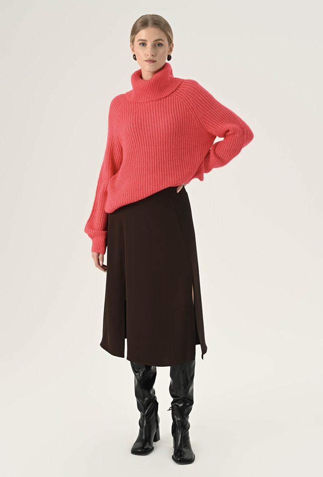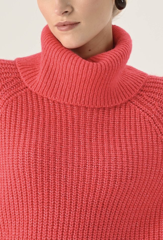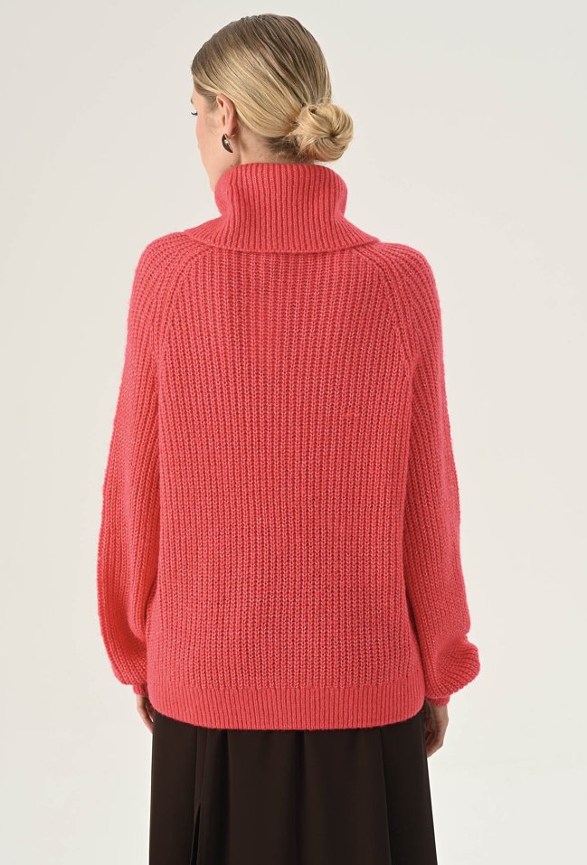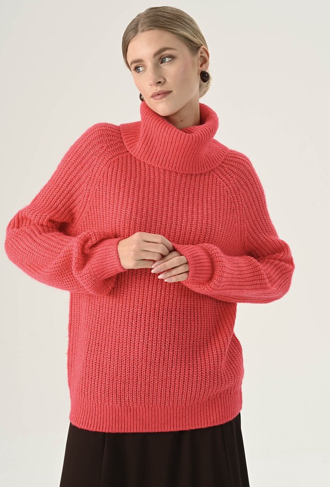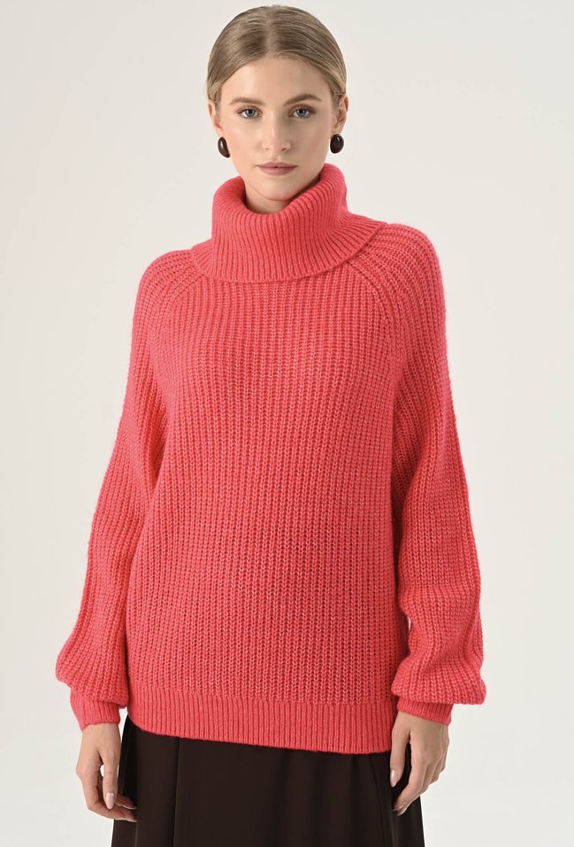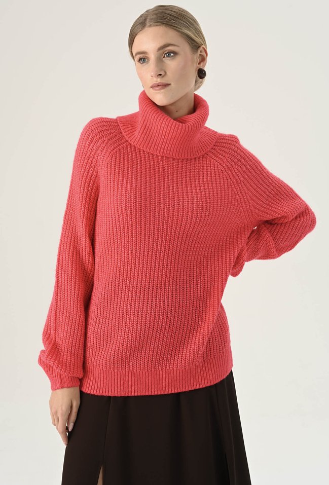 Koralowy golf o luźnym fasonie