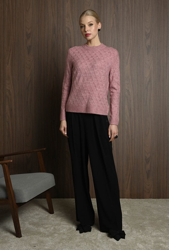 Puszysty sweter z ozdobnym splotem