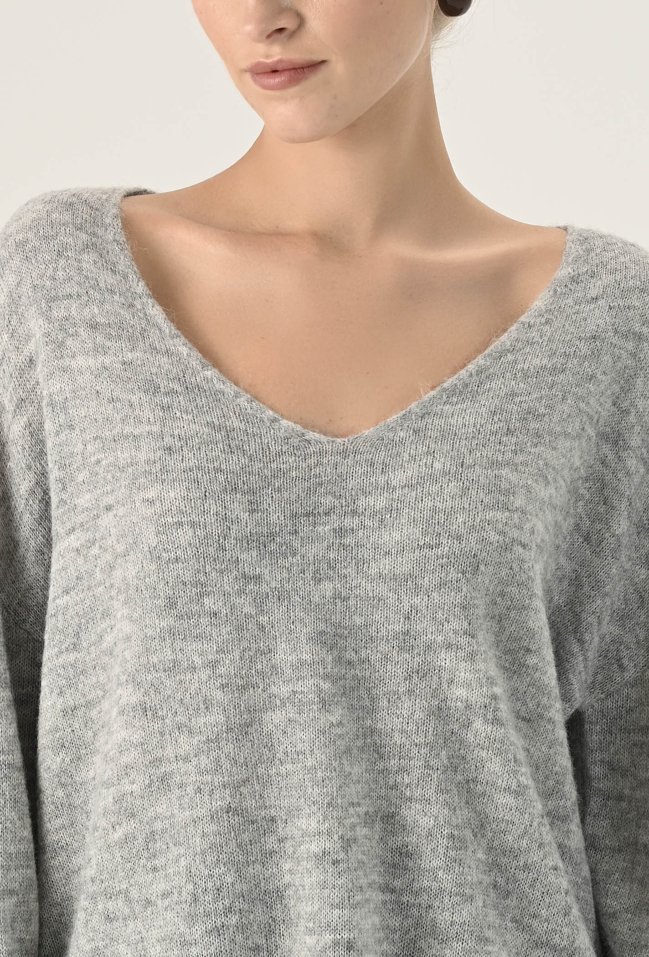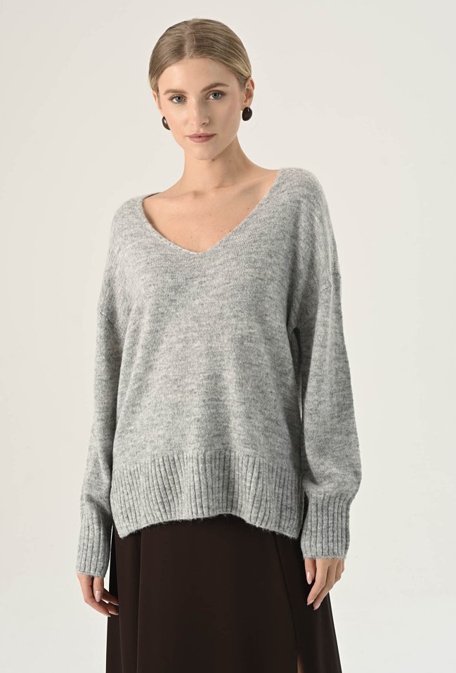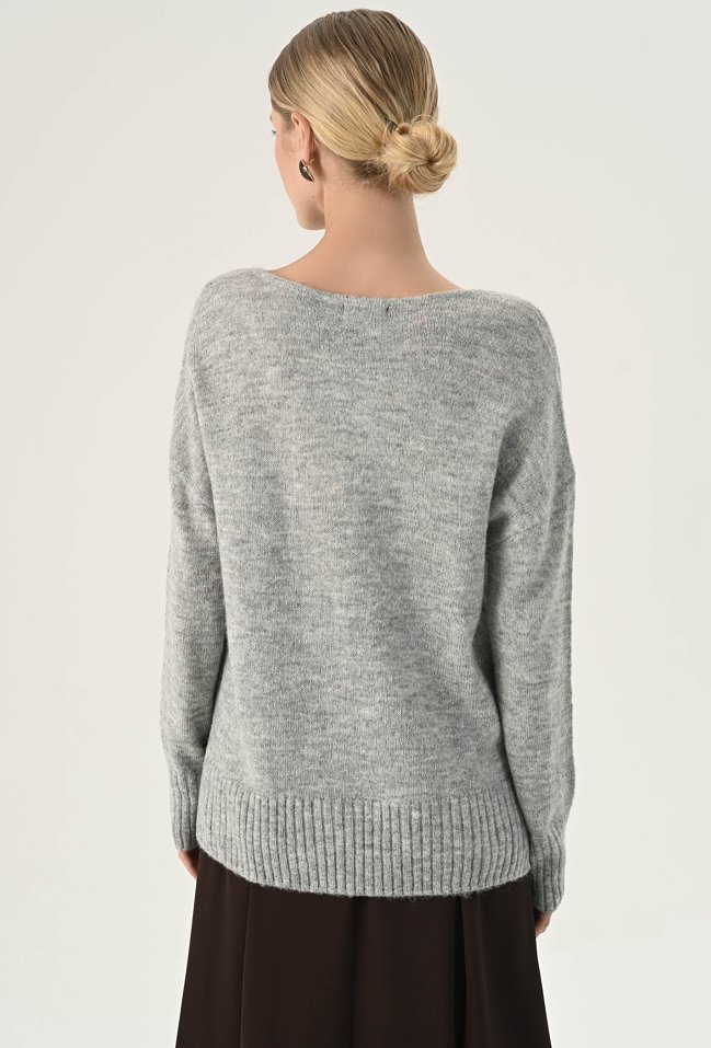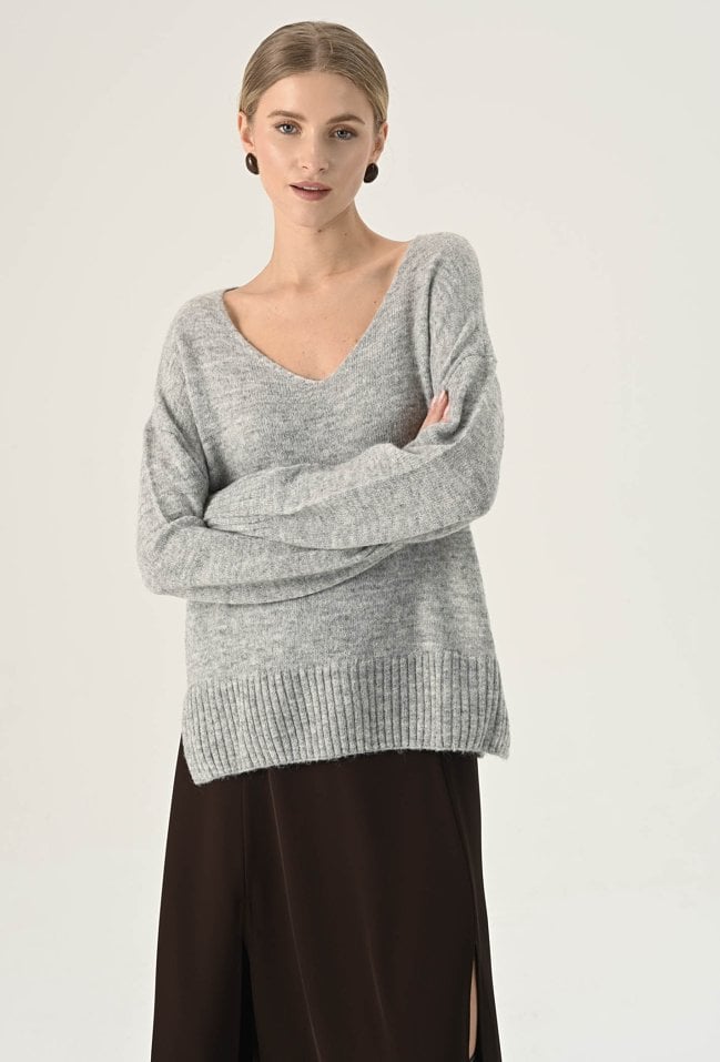 Szary sweter o luźnym kroju z dodatkiem wełny