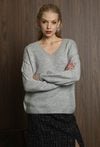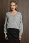 Efektowny sweter o grubym splocie, doskonale sprawdzi się na jesienne wieczory. Ma luźny fason z obniżoną linia ramion oraz dekolt w literę V. Sweter wykonany jest z miłej w dotyku dzianiny. Dostępny w trzech wersjach kolorystycznych. Modelka na zdjęciu ma 177 cm wzrostu i prezentuje rozmiar 36/S.