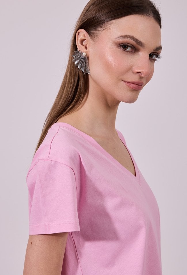 T-shirt z dekoltem w v-nek