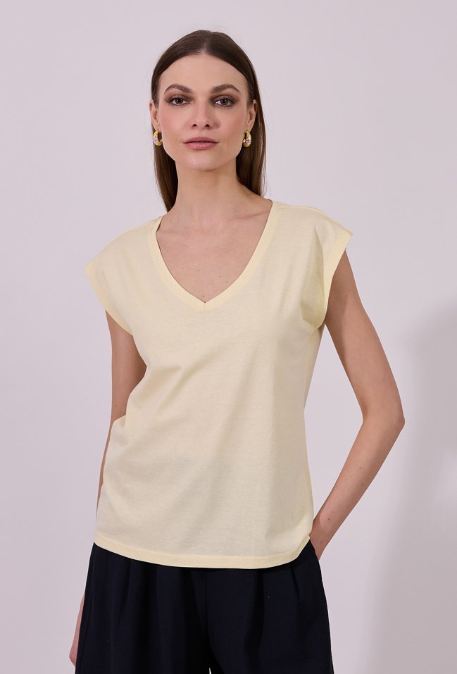T-shirt z dekoltem w v-nek