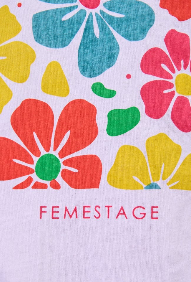 T-shirt damski o luźnym, komfortowym kroju z krótkim rękawem. Model z klasycznym, półokrągłym dekoltem, który nadaje całości uniwersalnego charakteru. Z przodu znajduje się wyrazisty, kolorowy nadruk z motywem kwiatowym, który dodaje stylizacji energii i świeżości. Modelka na zdjęciu ma 177 cm wzrostu i prezentuje rozmiar S.