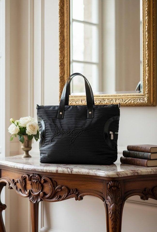 Damska torba typu shopper wykonana z trwałego materiału tekstylnego. Pojemna, jednokomorowa konstrukcja kryje jasną, logowaną podszewkę oraz praktyczne kieszonki na drobiazgi. Torba wyposażona jest w wygodne rączki do noszenia w dłoni oraz dołączony, regulowany pasek na ramię. Dodatkowe kieszenie zapinane na suwak- z tyłu i z boku- zapewniają szybki dostęp do najpotrzebniejszych rzeczy. Torbę należy przechowywać w dołączonym woreczku. Wymiary: 45 cm x 38 cm x 13 cm