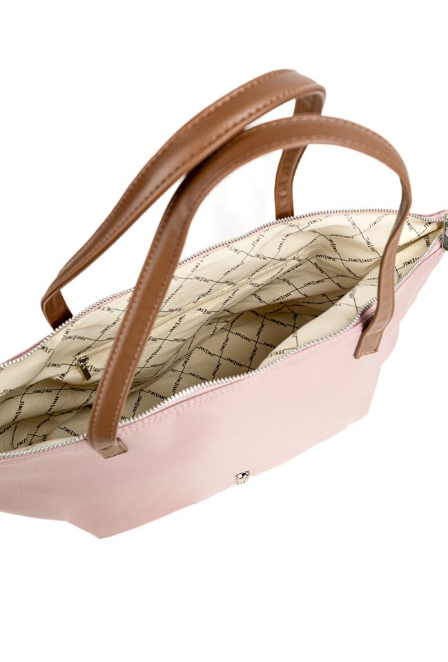 Tekstylna torba damska o wymiarach 45 × 30,5 × 14 cm to pojemny i wygodny wybór na co dzień. Torba jest jednokomorowa, ma jasną, logowaną podszewkę oraz dodatkowe kieszonki na drobiazgi, które ułatwiają organizację wnętrza. Torba zawieszona na rączkach zapewnia komfort noszenia. Torbę należy przechowywać w dołączonym woreczku.