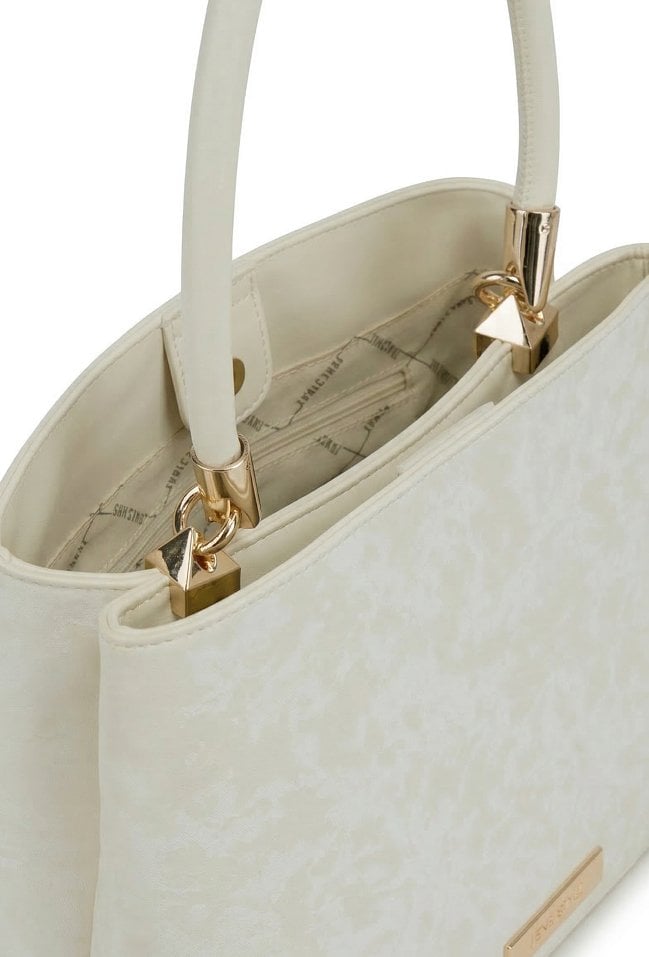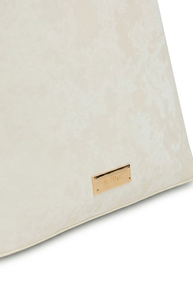 Kuferek damski o wymiarach 27 × 19 × 13 cm. Dwukomorowy model z jasną, logowaną podszewką oraz dodatkowymi kieszonkami na drobiazgi. Kuferek zawieszony na rączce, w zestawie regulowany, odpinany pasek umożliwiający noszenie na ramieniu. Model wyróżnia się ciekawym wzorem. Torbę należy przechowywać w dołączonym woreczku.
