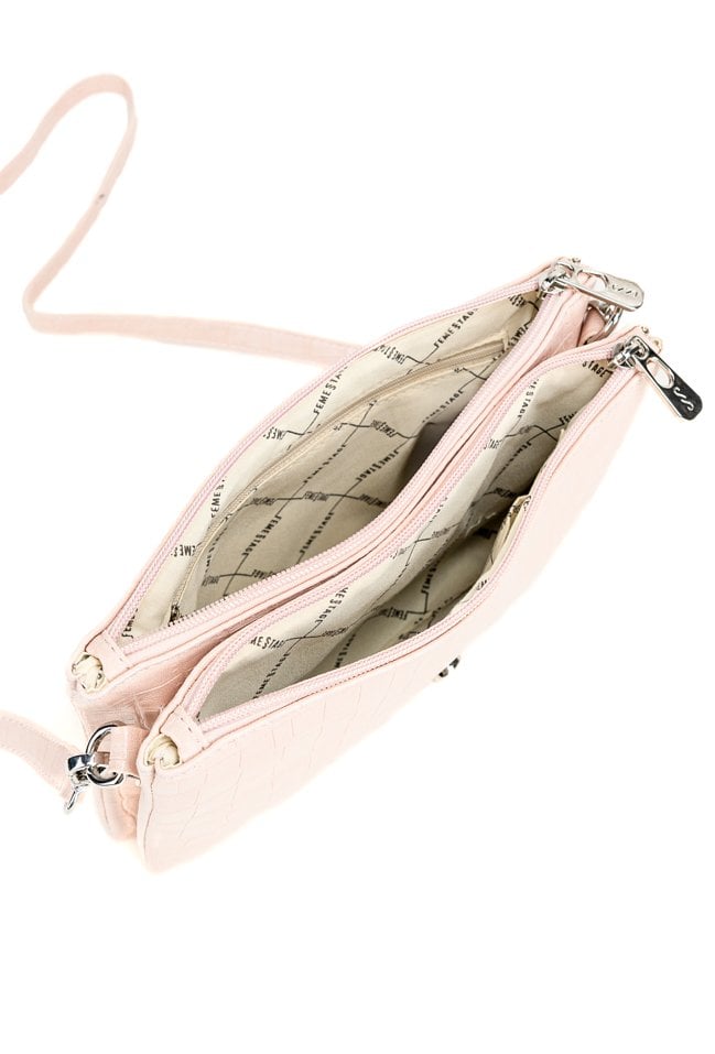 Mała torebka damska typu crossbody o wymiarach 25 × 17 × 3 cm to praktyczny dodatek na co dzień i na wyjścia. Torba jest dwukomorowa, ma jasne, logowane podszewki oraz dodatkowe kieszonki na drobiazgi, które ułatwiają organizację wnętrza. Torba zawieszona na odpinanym pasku z możliwością regulacji zapewnia wygodę noszenia na ramieniu. Torbę należy przechowywać w dołączonym woreczku.